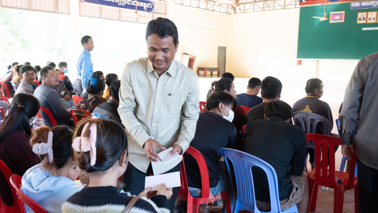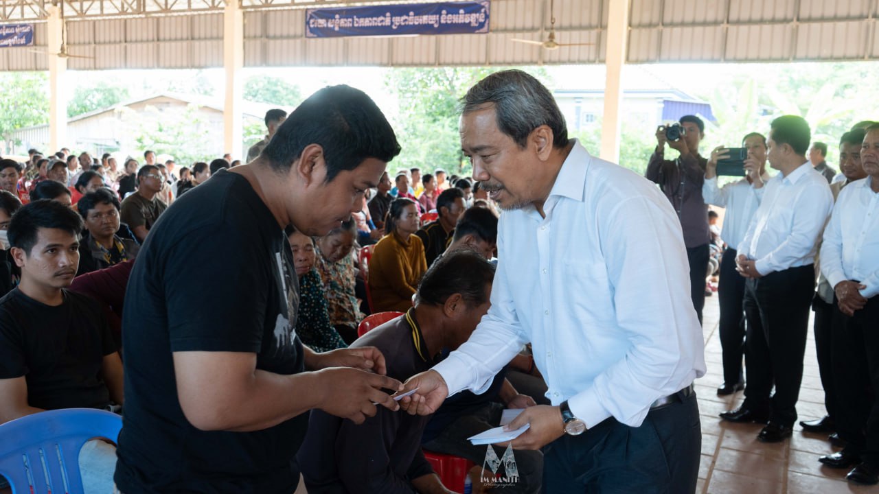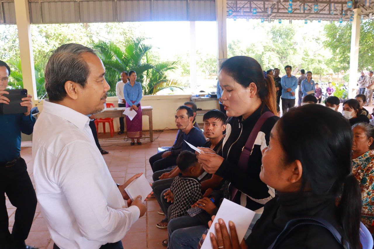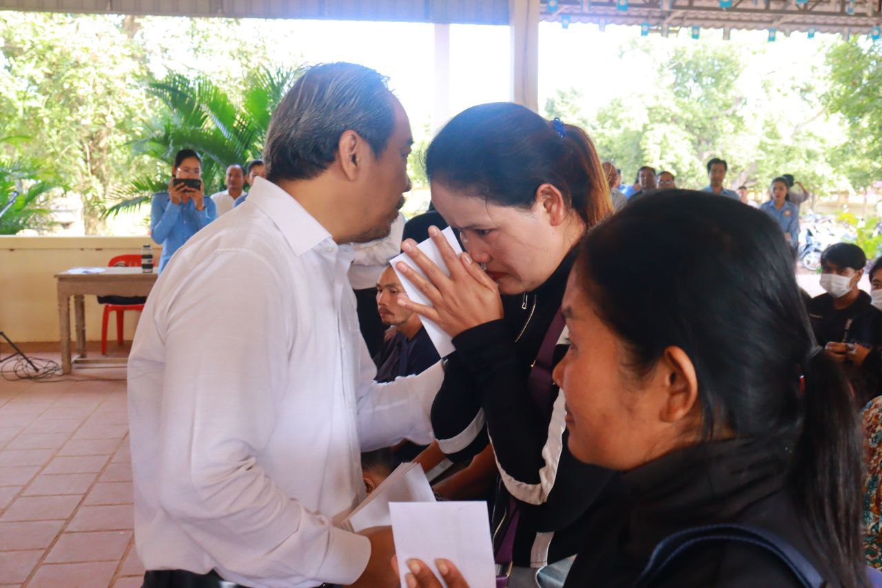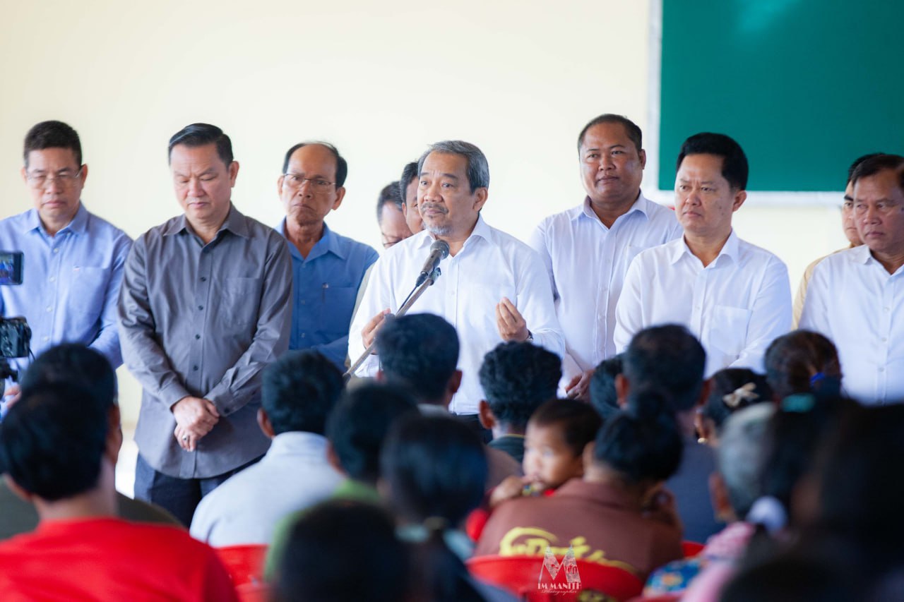(បាត់ដំបង)៖ ទេសរដ្ឋមន្ត្រី កែវ រ៉េមី ប្រធាន គណៈកម្មាធិការសិទ្ធិមនុស្សកម្ពុជា (គ.ស.ម.ក.) និងជាប្រធានក្រុមការងាររាជរដ្ឋាភិបាលចុះមូលដ្ឋានស្រុកគាស់ក្រឡ និងលោក លោកស្រី ក្រុមការងាររាជរដ្ឋាភិបាលចុះមូលដ្ឋានស្រុកគាស់ក្រឡ នាព្រឹកថ្ងៃទី១៣ ខែធ្នូ ឆ្នាំ២០២៥ បានអញ្ជើញចុះជួបសំណេះសំណាលជាមួយក្រុមគ្រួសារភៀសសឹក ដែលមកស្នាក់នៅស្រុកគាស់ក្រឡ ខេត្តបាត់ដំបង ចំនួន ១៨១គ្រួសារ ប្រមាណ ៦០០នាក់ ដែលក្នុងនោះរួមមានទាំងកុមារ ជនចាស់ជរា ជនមានពិការភាព និងស្ត្រីមានផ្ទៃពោះ នៅតាមបណ្តាភូមិសាស្ត្រនានា ក្នុងស្រុកគាស់ក្រឡ។