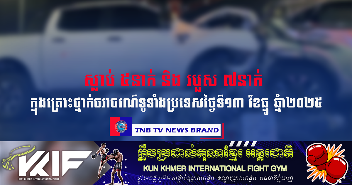 ស្លាប់៥នាក់ និងរបួស៧នាក់ ក្នុងគ្រោះថ្នាក់ចរាចរណ៍ទូទាំងប្រទេសថ្ងៃទី១៣ ខែធ្នូ ឆ្នំា២០២៥