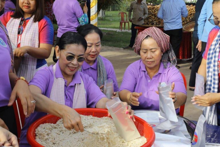 ស្វាយរៀង៖ តបតាមការអំពាវនាវរបស់ សម្តេចអគ្គមហាសេនាបតីតេជោ ហ៊ុន សែន ប្រធានព្រឹទ្ធសភា និងជាប្រធានគណប្រជាជនកម្ពុជា បានប្រកាស កាលពីថ្ងៃទី១០ ខែធ្នូ ឆ្នាំ២០២៥ ថា «ទទួលទានអំបុកស្រូវថ្មី វាយសត្រូវឈ្លានពាន» នាព្រឹកថ្ងៃសៅរ៍ ៨រោច ខែមិគសិរ ឆ្នាំម្សាញ់ សប្តស័ក ព.ស. ២៥៦៩ ត្រូវនឹង ថ្ងៃទី១៣ ខែធ្នូ ឆ្នាំ២០២៥ សម្តេចកិត្តិសង្គហបណ្ឌិត ម៉ែន សំអន ប្រធានគណៈកម្មាធិការកណ្តាលសមាគមនារីកម្ពុជា ដើម្បីសន្តិភាពនិងអភិវឌ្ឍន៍ បានអញ្ជើញចូលរួមក្នុងពិធីដាល់អំបុកមហាគ្រួសារខ្មែរ ស្ថិតក្នុងស្រុកស្វាយជ្រំ ខេត្តស្វាយរៀង។