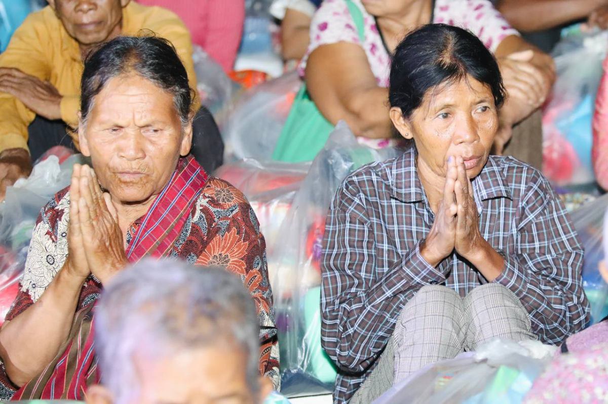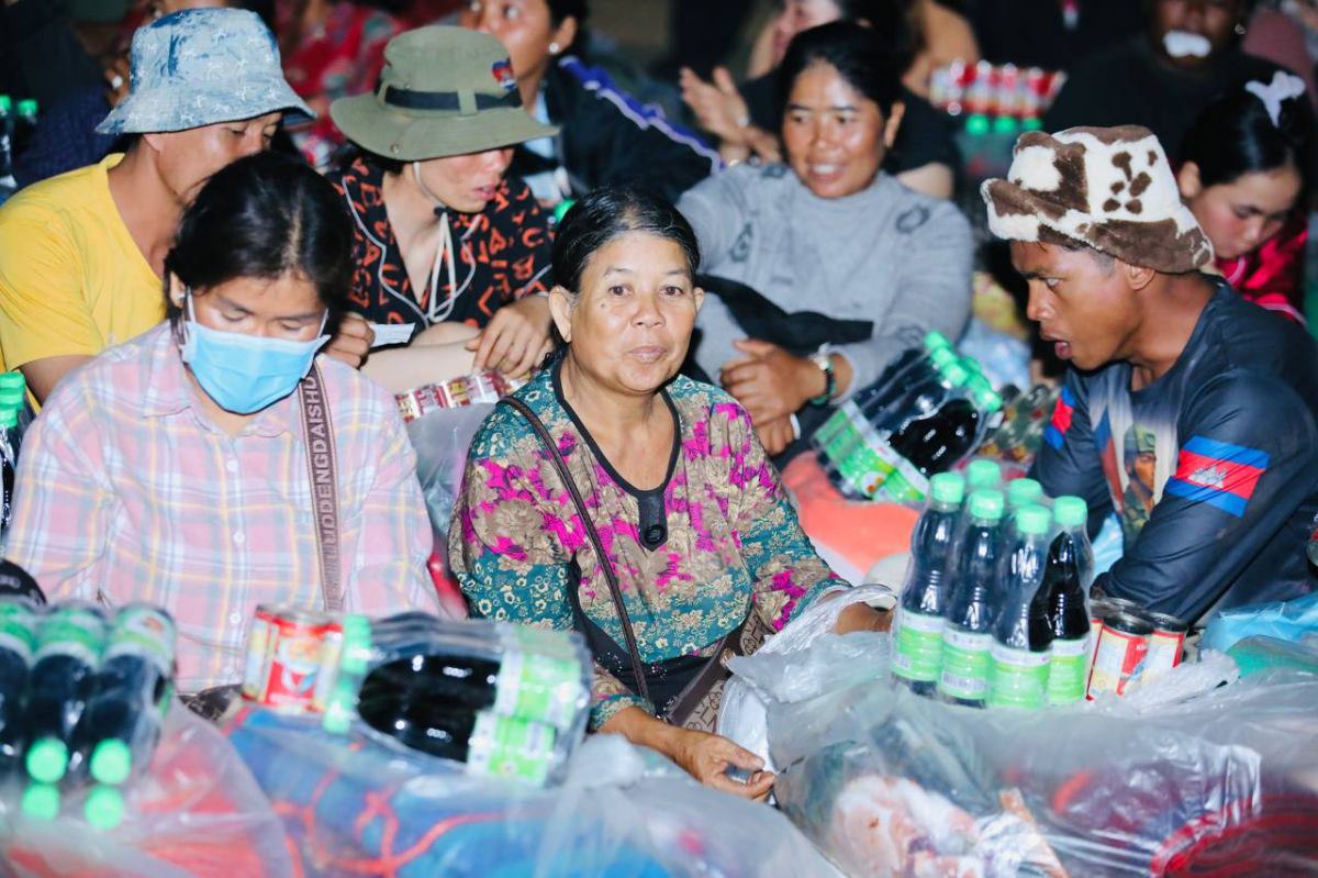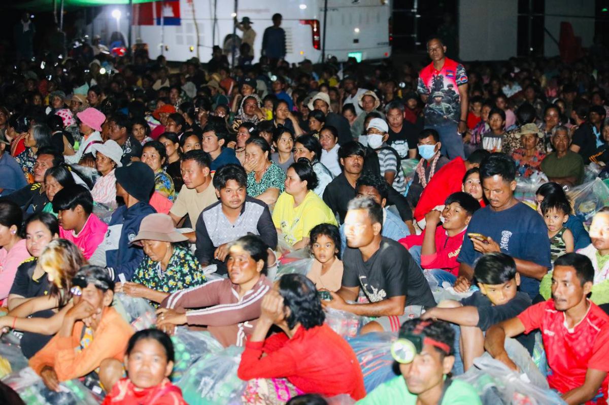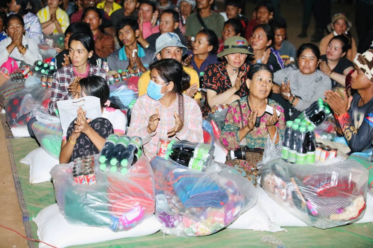 តំណាងសម្ដេចតេជោ សម្ដេចកិត្តិព្រឹទ្ធបណ្ឌិត និងក្រុមគ្រួសារបន្តនាំយកអណោយចែកទាំងយប់ជូនជនភៀសសឹកនៅក្នុងគ្រាមានសង្រ្គាម