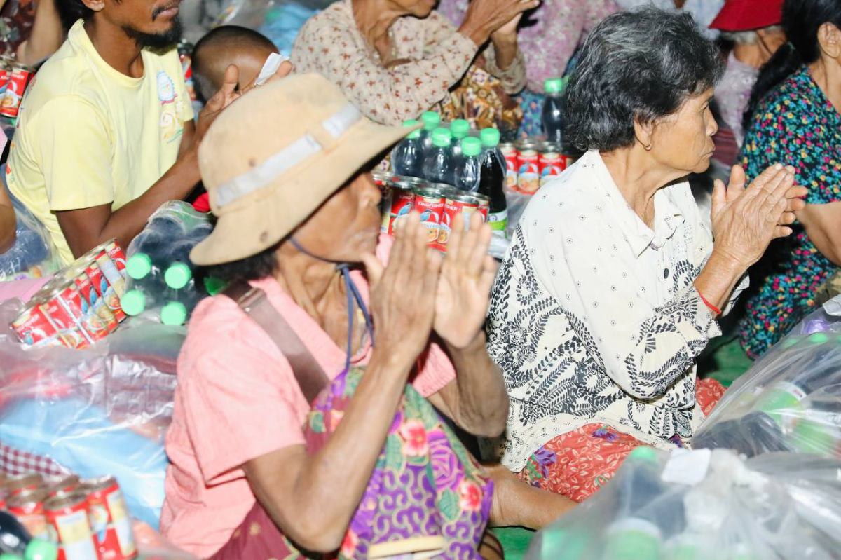 អំណោយរបស់សម្ដេចតេជោហ៊ុន សែន និងក្រុមគ្រួសារបានផ្តល់ជូនដល់ជនភៀសសឹក រួមមានអង្ករ មី ទឹកស៊ីអ៊ីវ ត្រីខ ត្រីងៀត និងសាច់ក្រក ឃីតជាដើម។
