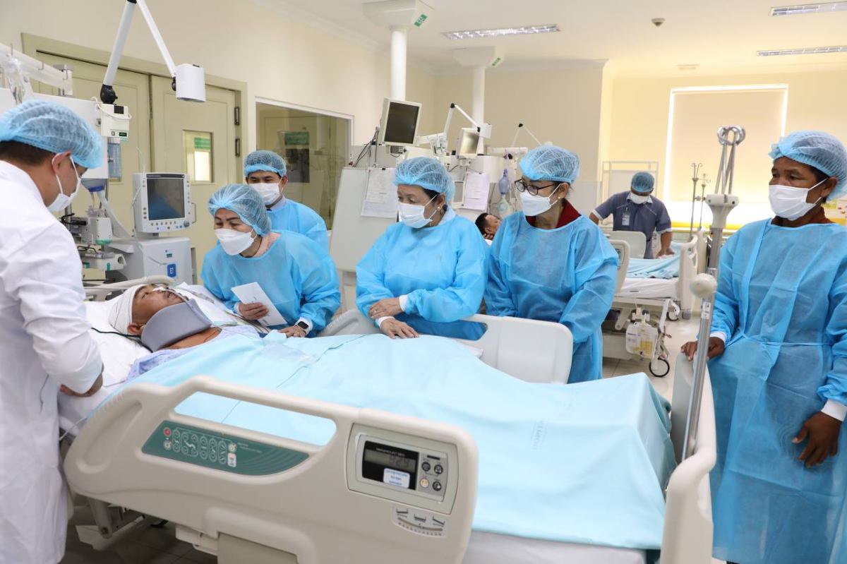 សម្តេចមហារដ្ឋសភាធិការធិបតី ឃួន សុដារី ប្រធានរដ្ឋសភា នៃព្រះរាជាណាចក្រកម្ពុជា បានចាត់តាំងក្រុមសភាជាតិកម្ពុជា នៃអ្នកនយោបាយសភាស្ត្រី ដឹកនាំដោយ លោកជំទាវ ឡោក ខេង ប្រធានក្រុមសភាជាតិកម្ពុជានៃអ្នកនយោបាយសភាស្រ្តី និងជាប្រធានគណ:កម្មការសុខាភិបាល សង្គមកិច្ច អតីតយុទ្ធជន យុវនីតិសម្បទា ការងារ បណ្តុះបណ្តាលវិជ្ជាជីវៈ និងកិច្ចការនារី នៃរដ្ឋសភា (គណៈកម្មការទី៨) នៅរសៀលថ្ងៃទី១៦ ខែធ្នូ ឆ្នាំ ២០២៥ អញ្ជើញចុះសួរសុខទុក្ខដល់វីរៈកងទ័ពសម្រាកព្យាបាលនៅមន្ទីរពេទ្យកាល់ម៉ែត ដែលបានរងរបួសក្នុងការតស៊ូប្រយុទ្ធយ៉ាងស្វិតស្វាញការពារពីការឈ្លានពានរបស់ថៃ លើបូរណភាពទឹកដីកម្ពុជា។