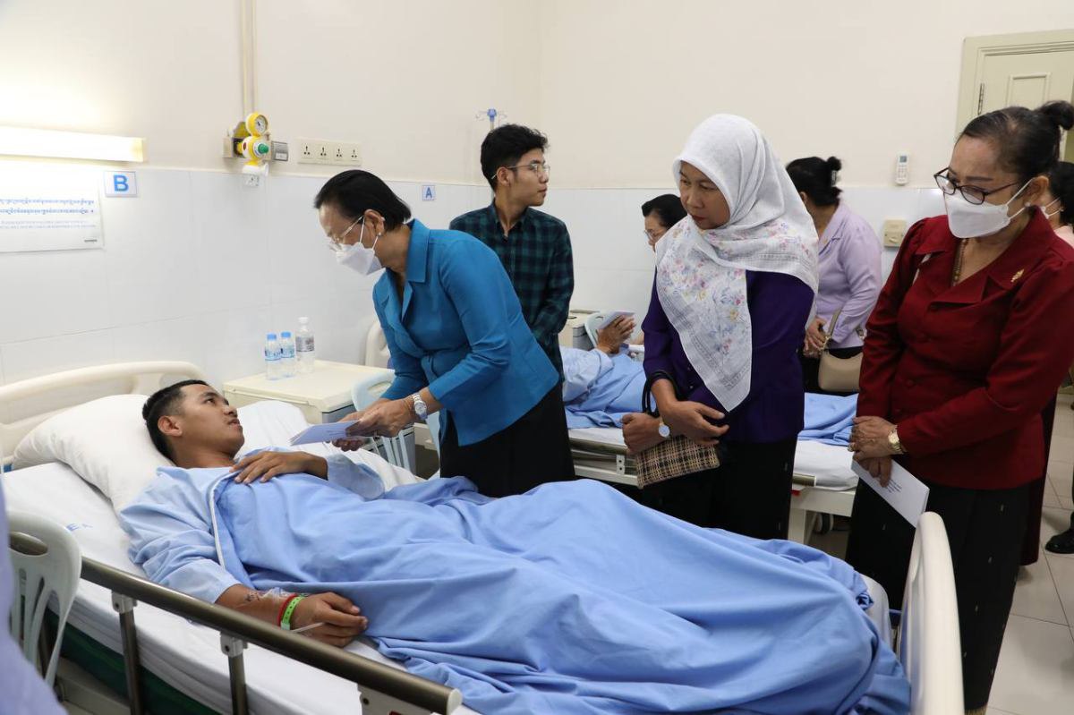 លោកជំទាវ បានជូនពរដល់វីរកងទ័ពទាំងអស់ ឆាប់បានជាសះស្បើយ និងឆាប់បានវិលត្រឡប់ចូលអង្គភាពវិញ ដើម្បីបន្តបេសកកម្មការពារប្រទេសជាតិ និងឆាប់បានវិលជួបជុំក្រុមគ្រួសារវិញ។ ក្រុមសភាជាតិកម្ពុជានៃអ្នកនយោបាយសភាស្រ្តី បានលើកទឹកចិត្ត និងថ្លែងនូវការកោតសសើរចំពោះការលះបង់ និងវីរភាពដ៏ធំធេងដែលមិនអាចកាត់ថ្លៃបាន ក្នុងនាមជាទ័ពជួរមុខ ក្នុងការរក្សាសន្តិភាព ការការពារអធិបតេយ្យបូរណភាពទឹកដីពីការឈ្លានពានរបស់យោធាសៀម។