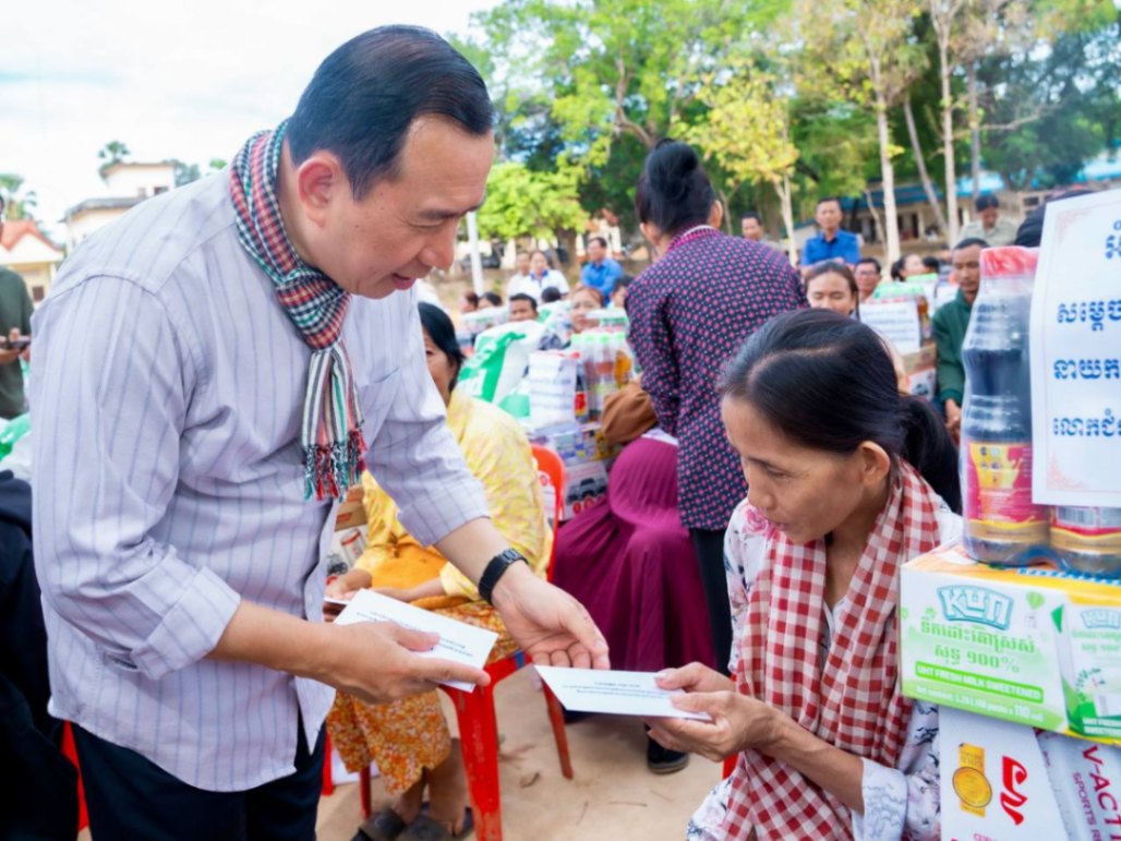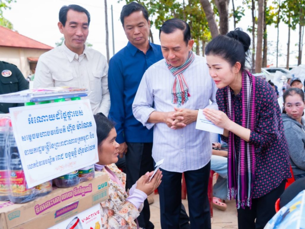 សូមជម្រាបជូនថា អំណោយដ៏ថ្លៃថ្លារបស់សម្ដេចមហាបវរធិបតី ហ៊ុន ម៉ាណែត នាយករដ្ឋមន្ត្រីនៃព្រះរាជាណាចក្រកម្ពុជា និង លោកជំទាវបណ្ឌិត ជូនបងប្អូន លោកពូ អ្នកមីង លោកយាយ លោកតា ដែលជាគ្រួសារភៀសសឹក ដើម្បីដោះស្រាយជីវភាពរស់នៅប្រចាំថ្ងៃក្នុងនោះរួមមាន៖ អង្ករចំនួន ៥តោន (ក្នុង១គ្រួសារ ១០គីឡូ), ទឹកក្រូចចំនួន ៣៥០កេស (ក្នុង១គ្រួសារ ១កេស), ទឹកសុទ្ធចំនួន ៥០០កេស (ក្នុង១គ្រួសារ ១កេស), ទឹកដោះគោចំនួន ៤០០កេស (ក្នុង១គ្រួសារ ១កេស), មីចំនួន ៤១៧កេស (ក្នុង១គ្រួសារ ១កេស), ទឹកត្រីចំនួន ៥០០យួរ (ក្នុង១គ្រួសារ ១យួរ), ទឹកស៊ីអ៊ីវចំនួន ៥០០យួរ (ក្នុង១គ្រួសារ ១យួរ), សម្ភារៈសិក្សា ៤០០ឈុត (ក្នុង១ គ្រួសារ ១ ឈុត), ឃីត (សម្លៀកបំពាក់, ភួយ, ក្រមា)៣៥០ឃីត (ក្នុង១គ្រួសារ ១ឃីត), ឃីត (នំ, អាហារចម្រុះ) ៣៥០ឈុត (ក្នុង១ គ្រួសារ ១ ឈុត), សម្ភារៈផ្ទះបាយ ចំនួន ៨កេសធំ, សម្ភារៈប្រើប្រាស់ប្រចាំថ្ងៃចំនួន ៣៤០ឈុត និងសម្ភារៈផ្សេងៗទៀត ព្រមទាំងថវិកា ៦ម៉ឺនរៀល ក្នុង ១គ្រួសារ៕