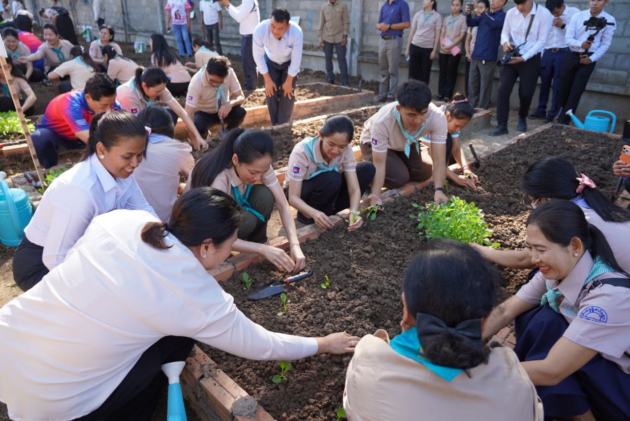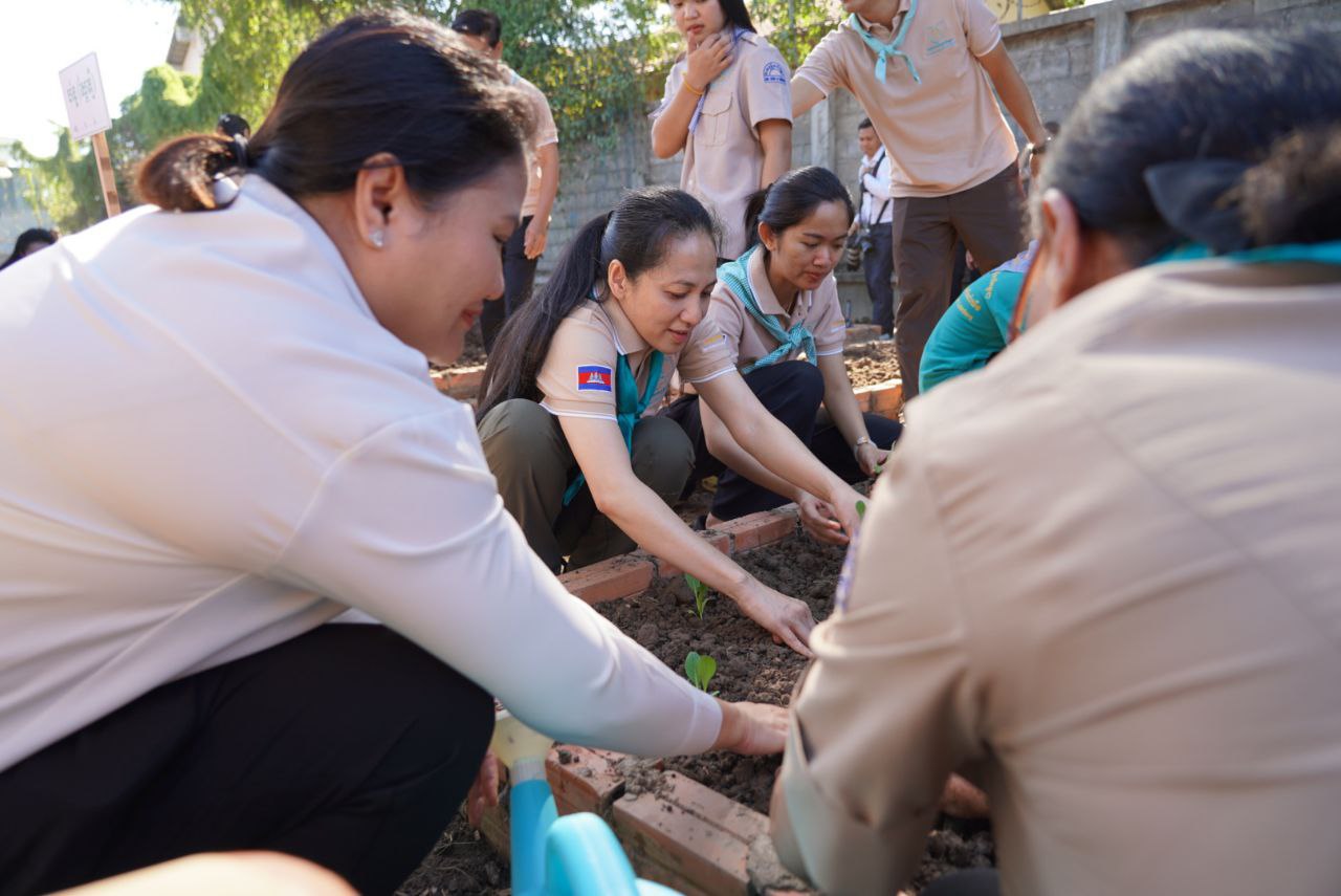 លោកជំទាវបណ្ឌិត ពេជ ចន្ទមុន្នី ហ៊ុន ម៉ាណែត អគ្គស្នងការនៃសមាគមកាយឫទ្ធិនារីកម្ពុជា នាព្រឹកថ្ងៃទី១៧ ខែធ្នូ ឆ្នាំ២០២៥នេះ បានអញ្ជើញចូលរួមដាំបន្លែ ចលនា «យើងរួមគ្នាដើម្បីជាតិ» នៅសាលាបឋមសិក្សាភ្នំពេញថ្មី រាជធានីភ្នំពេញ។