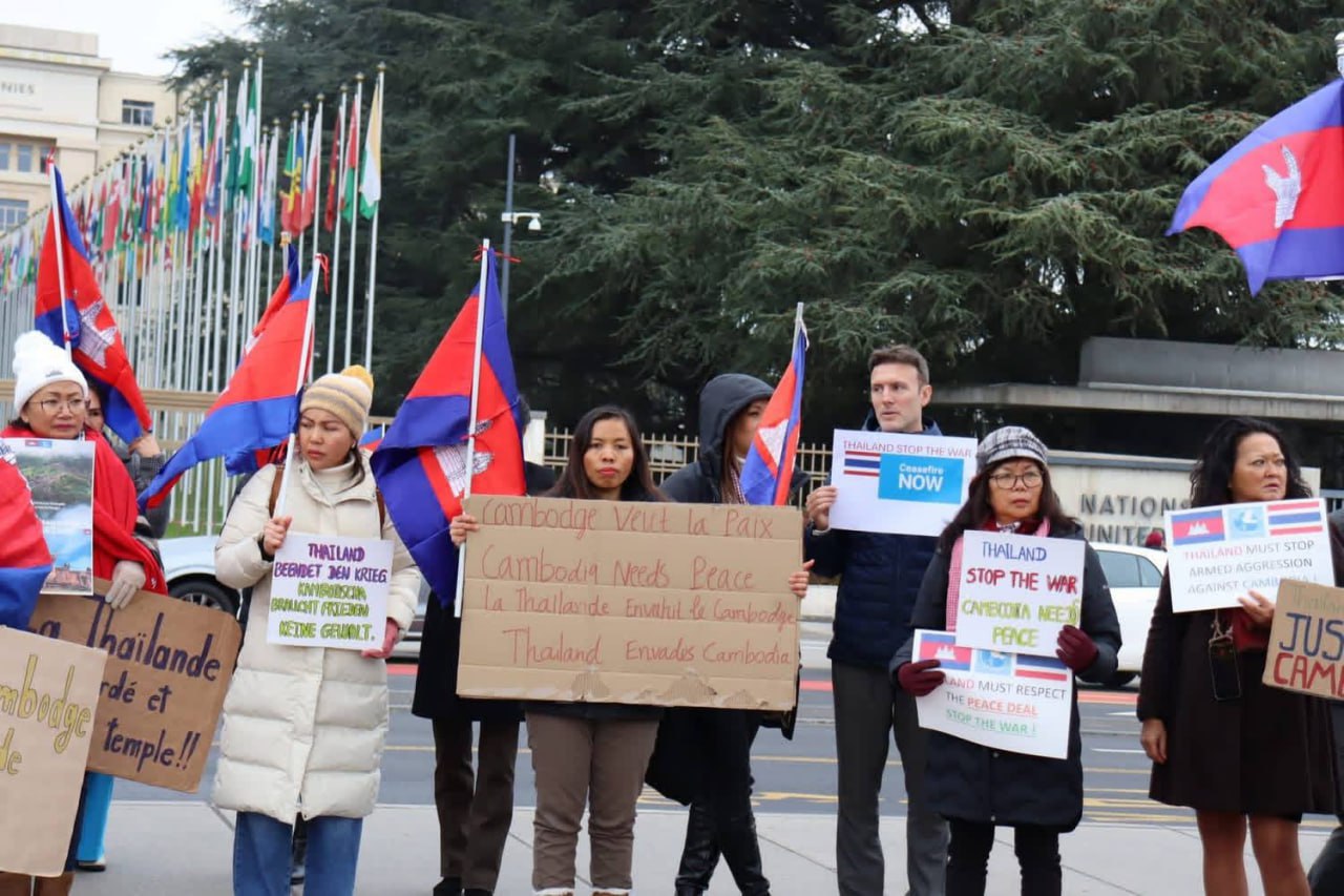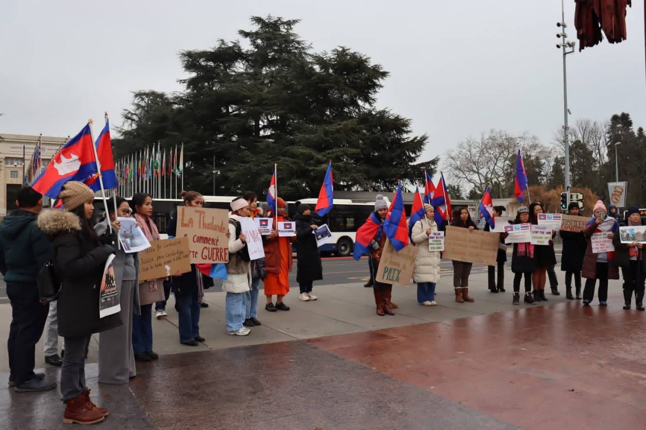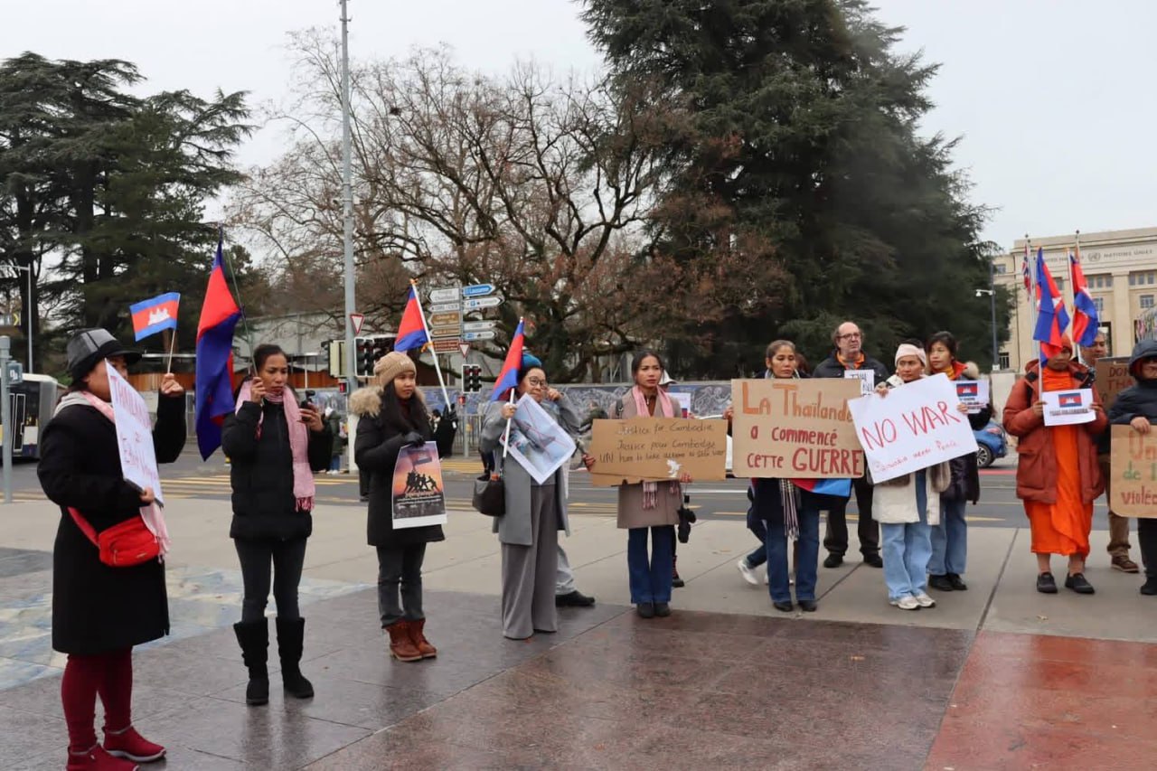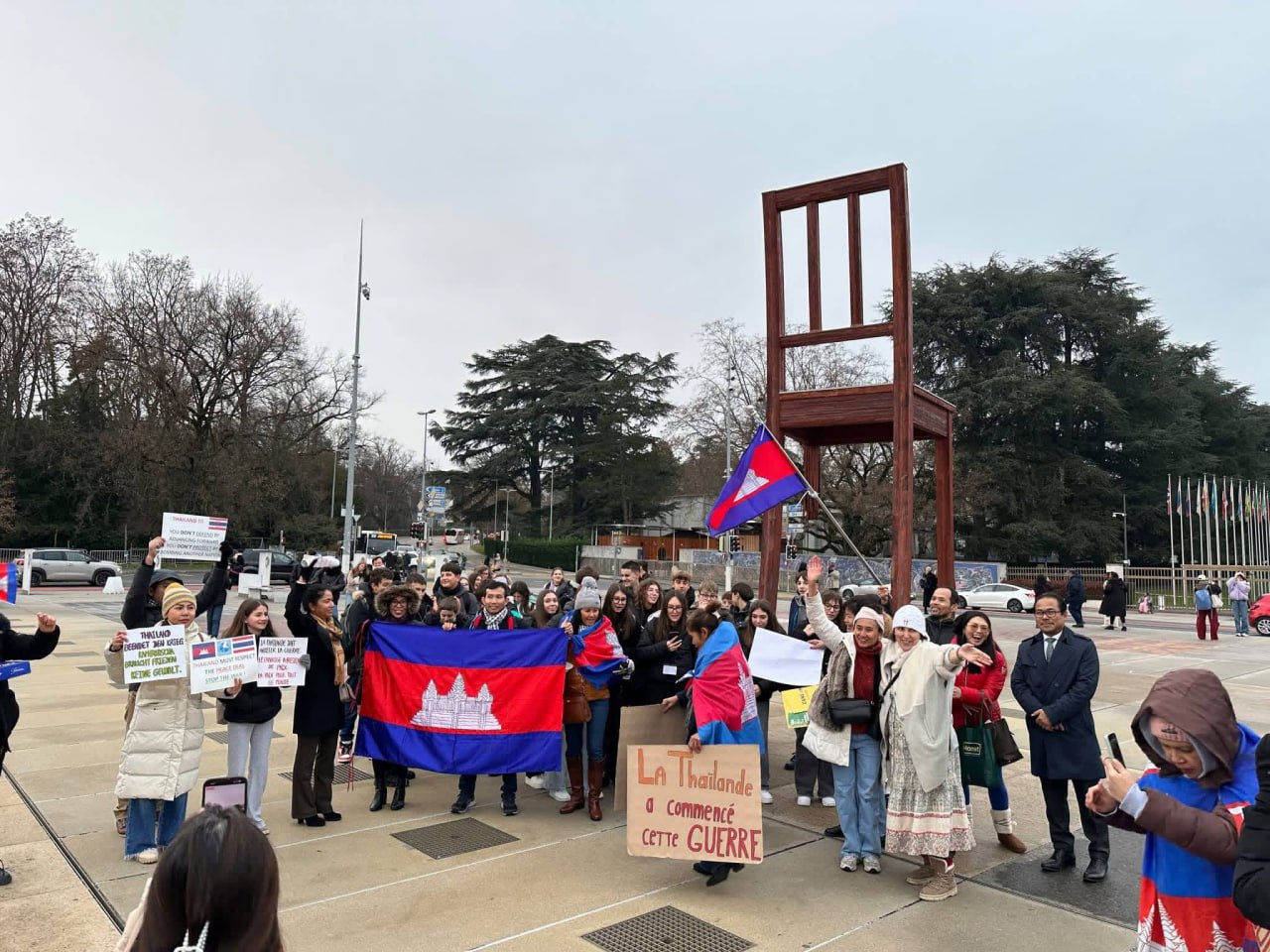 ពលរដ្ឋខ្មែរ ជនជាតិស្វីស និងអ៉ីតាលី ប្រមូលផ្តុំគ្នានៅមុខអង្គការ អ.ស.ប. ក្នុងទីក្រុងហ្សឺណែវ ដើម្បីថ្កោលទោសការឈ្លានពានដោយអាវុធរបស់ថៃ និងដើម្បីឈរជាមួយសន្តិភាព