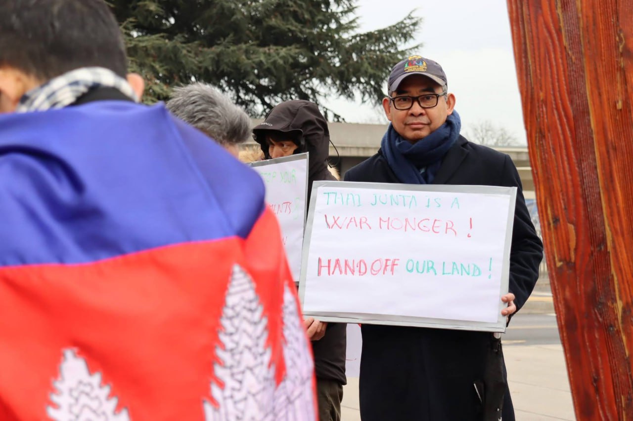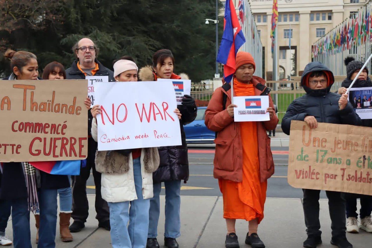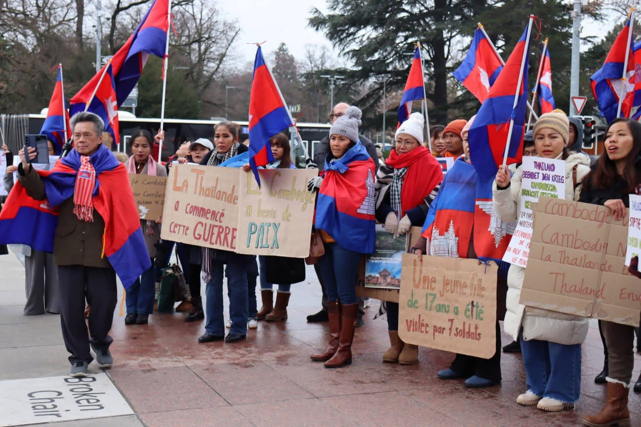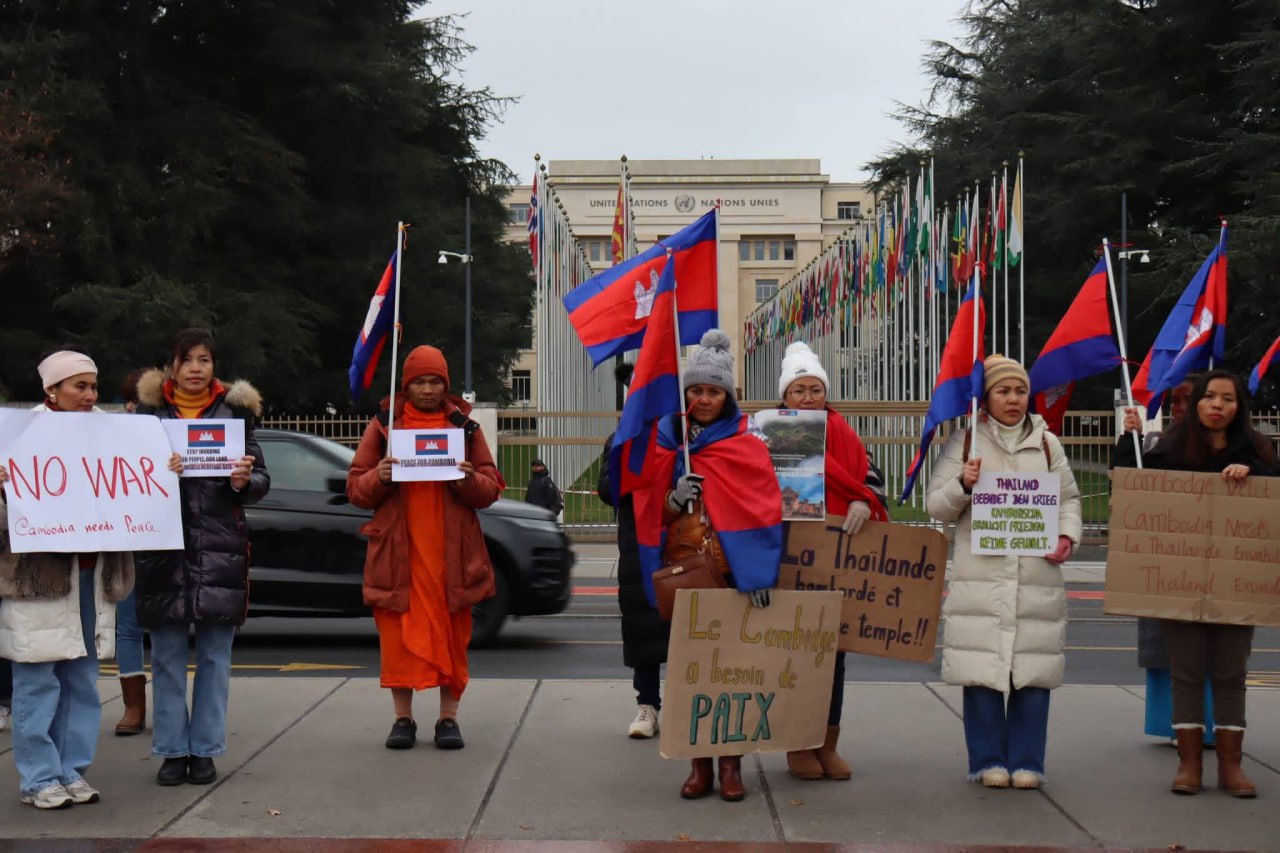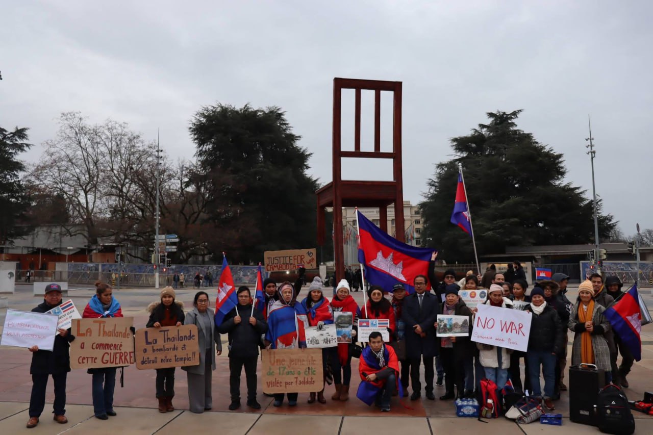 ពលរដ្ឋខ្មែរ ជនជាតិស្វីស និងអ៉ីតាលី ប្រមូលផ្តុំគ្នានៅមុខអង្គការ អ.ស.ប. ក្នុងទីក្រុងហ្សឺណែវ ដើម្បីថ្កោលទោសការឈ្លានពានដោយអាវុធរបស់ថៃ និងដើម្បីឈរជាមួយសន្តិភាព