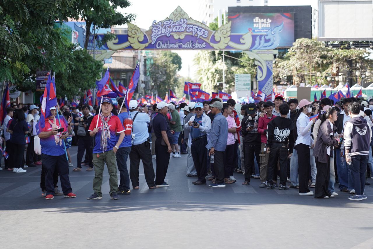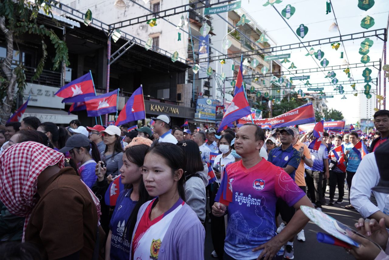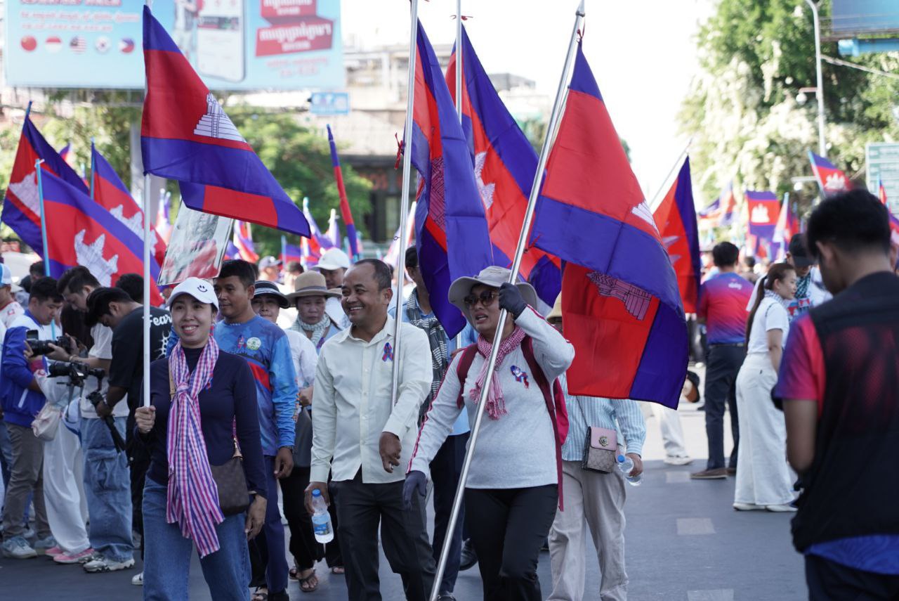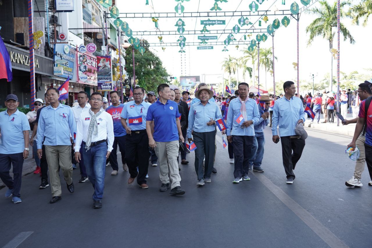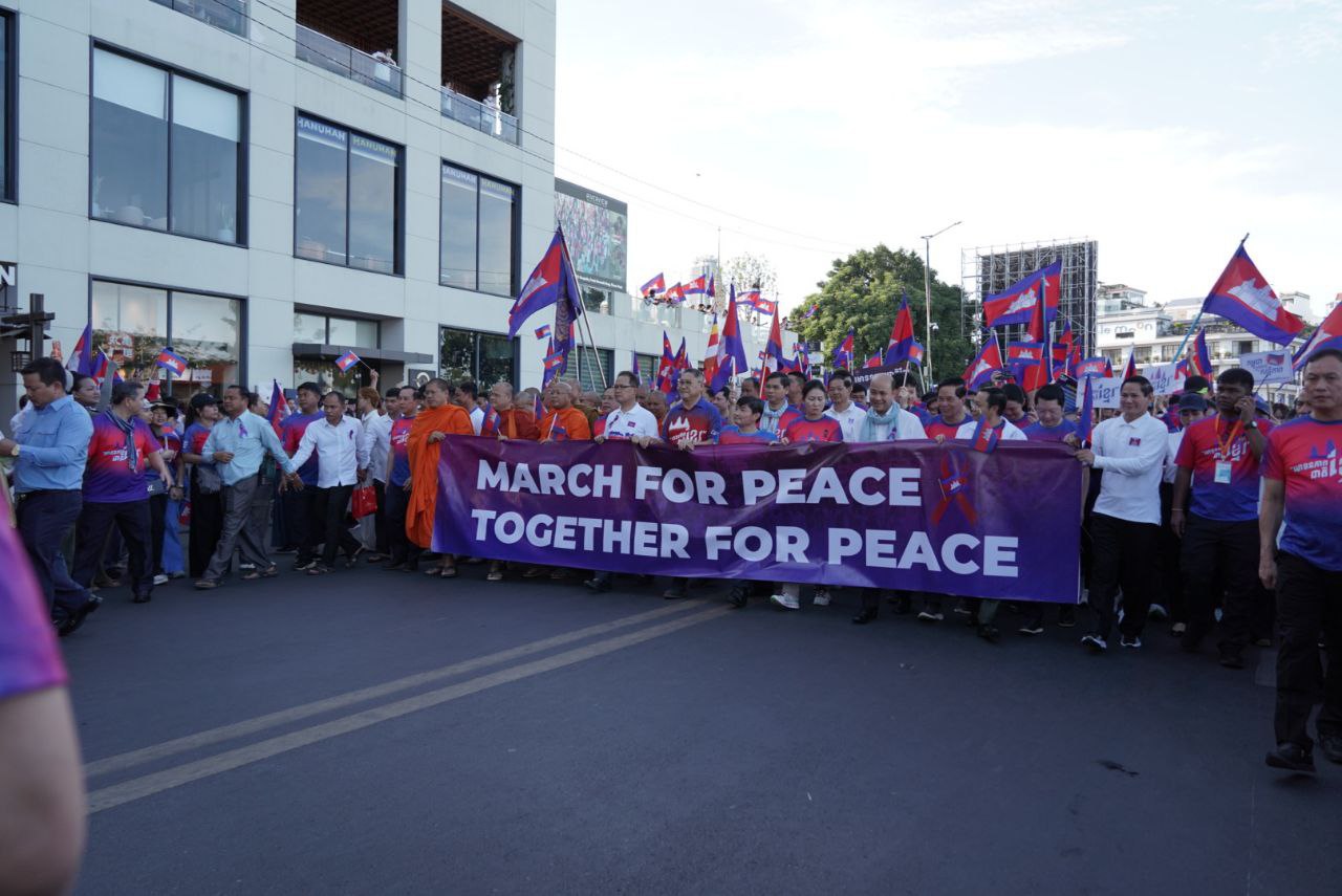 ពិធី «ដើរដើម្បីសន្តិភាព» ដែលរៀបចំដោយសហភាពសហព័ន្ធយុវជនកម្ពុជា ដែលចេញដំណើរពីផ្សាររាត្រី ដើរតាមវិថីថ្មើរជើងចតុមុខ ឆ្ពោះទៅវិមានឯករាជ្យ៕