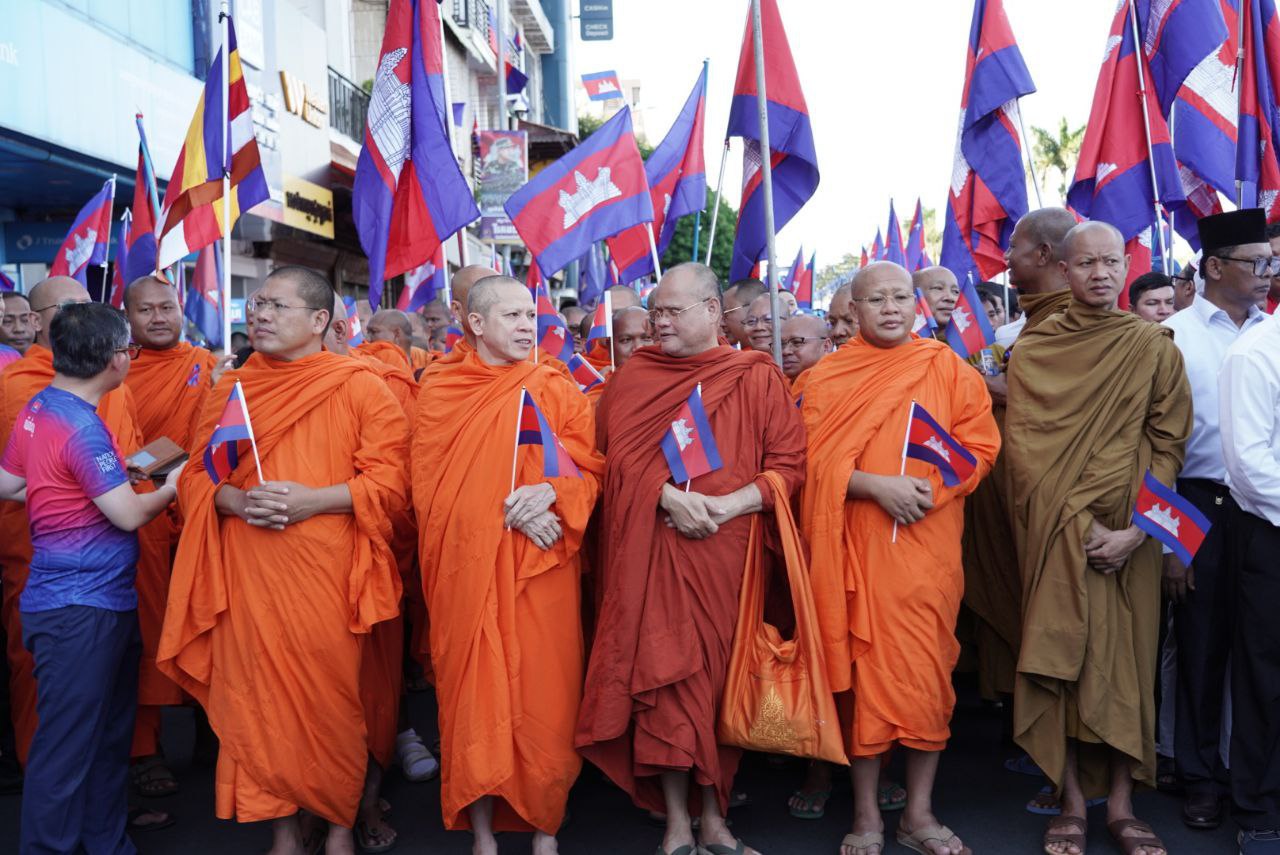 ព្រះសង្ឃ និងប្រជាពលរដ្ឋច្រើនកុះករ ចូលរួមធ្វើដំណើរក្នុងកម្មវិធី «ដើរដើម្បីសន្តិភាព» បង្ហាញស្មារតីគាំទ្រសន្តិភាព ពិសេសជំរុញឱ្យមានគោរពបទឈប់បាញ់ និងកិច្ចព្រមព្រៀងសន្តិភាពរវាងកម្ពុជានិងថៃ