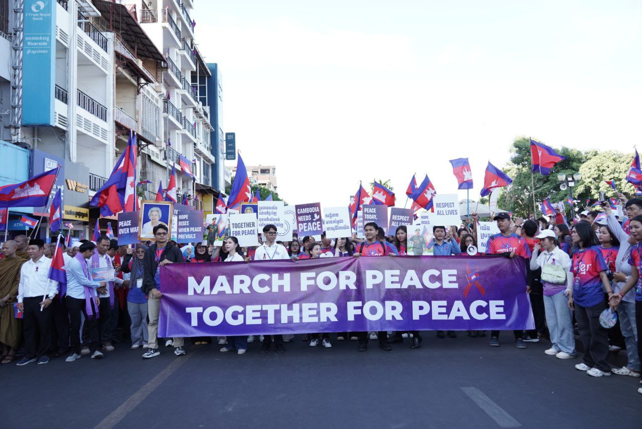 (ភ្នំពេញ)៖ នៅរសៀលថ្ងៃទី១៨ ខែធ្នូ ឆ្នាំ២០២៥នេះ មានព្រះសង្ឃ និងប្រជាពលរដ្ឋច្រើនកុះករ ចូលរួមធ្វើដំណើរក្នុងកម្មវិធី «ដើរដើម្បីសន្តិភាព» បង្ហាញស្មារតីគាំទ្រសន្តិភាព ពិសេសជំរុញឱ្យគោរពបទឈប់បាញ់ និងកិច្ចព្រមព្រៀងសន្តិភាពរវាងកម្ពុជា និងថៃ។