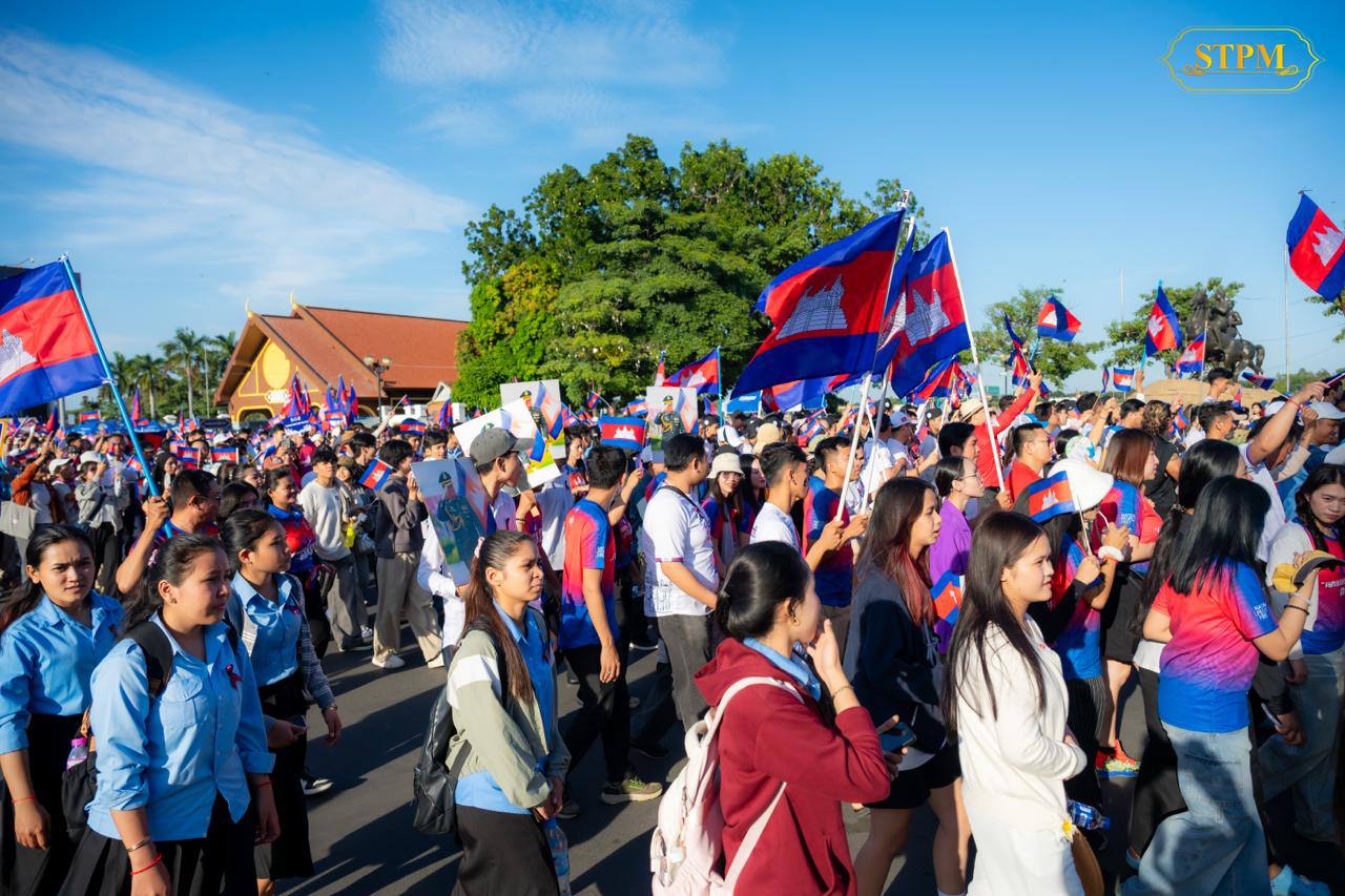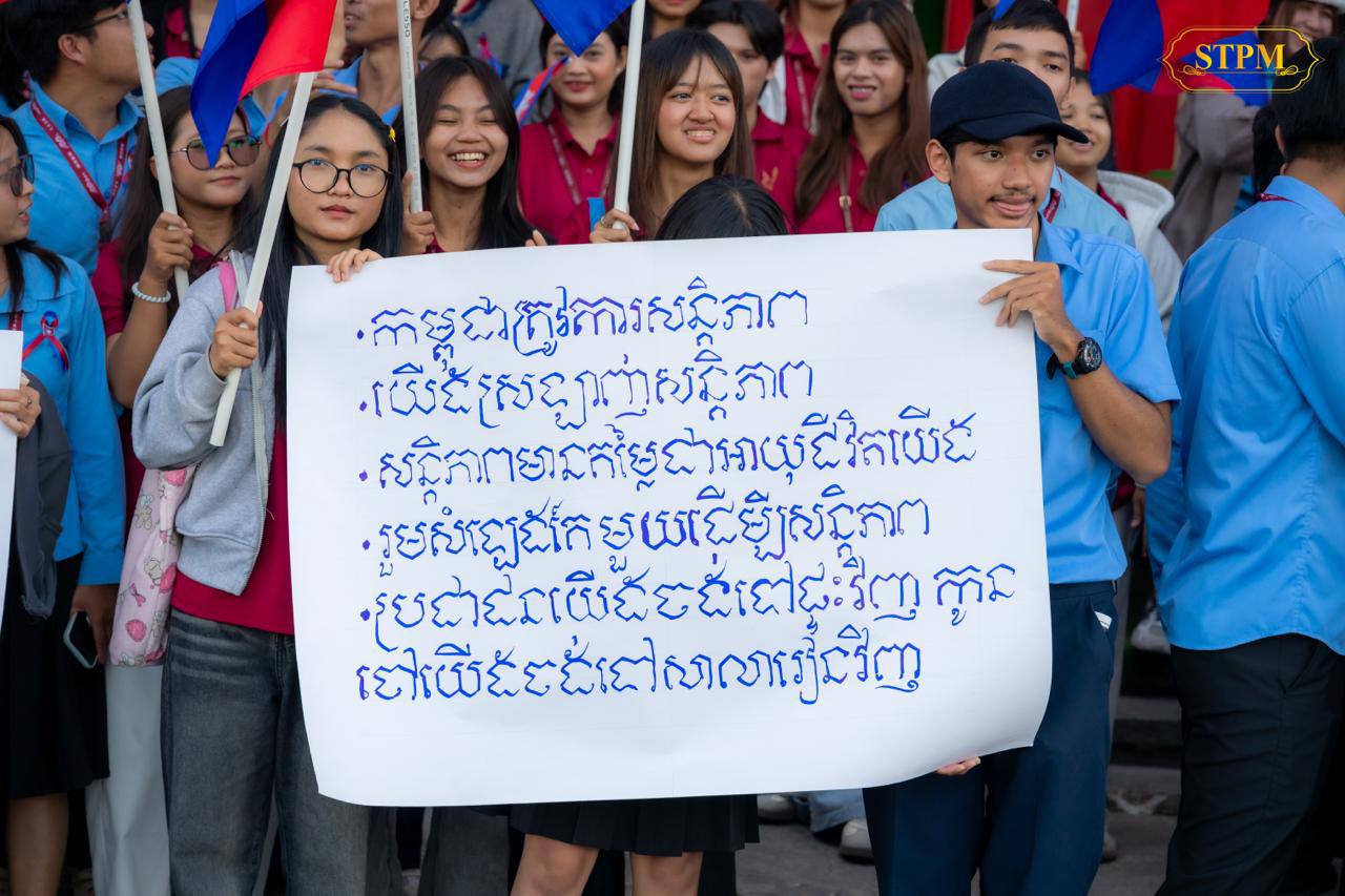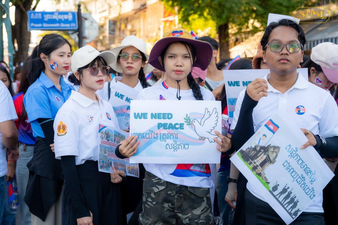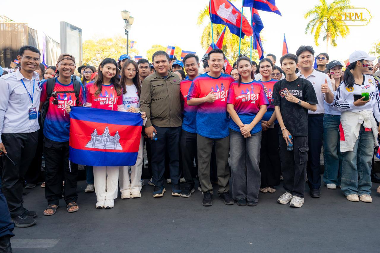 Sincere appreciation for the spirit of participation, which greatly encourages the Royal Government in its efforts to safeguard peace for the nation and the Cambodian people. Heartfelt thanks to the Union of Youth Federations of Cambodia for organizing this march, providing our compatriots with an opportunity to come together and express their shared aspiration for peace.