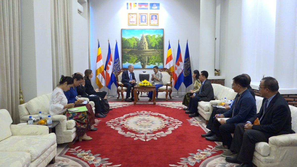 ជាកិច្ចចាប់ផ្តើម លោកជំទាវបណ្ឌិតសភាចារ្យ ភឿង សកុណា បានសម្តែងនូវការស្វាគមន៍យ៉ាងកក់ក្តៅជូនចំពោះឯកឧត្តម ឯកអគ្គរដ្ឋទូត ក្នុងការពង្រឹង និងពង្រីកទំនាក់ទំនងទ្វេភាគី លើវិស័យវប្បធម៌នៅកម្ពុជា។