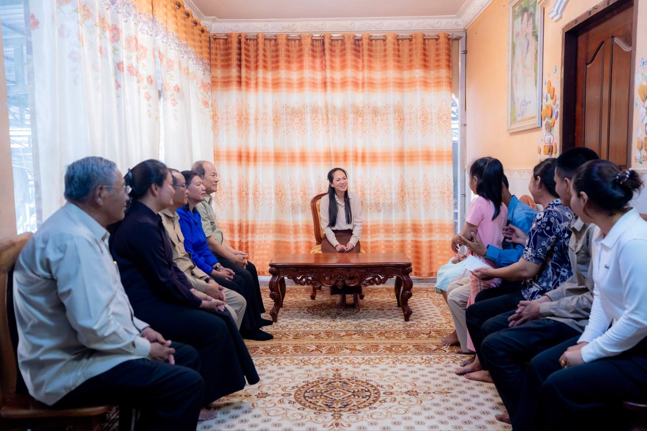 ក្នុងឱកាសជួបសំណេះសំណាលនេះដែរ លោកជំទាវបណ្ឌិត បានពាំនាំនូវប្រសាសន៍ផ្តាំផ្ញើសួរសុខទុក្ខ និងជូនពរដ៏ខ្ពង់ខ្ពស់បំផុតរបស់ សម្តេចអគ្គមហាសេនាបតីតេជោ ហ៊ុនសែន សម្តេចកិត្តិព្រឹទ្ធបណ្ឌិត ប៊ុន រ៉ានី ហ៊ុនសែន រួមជាមួយ សម្តេចមហាបវរធិបតី ហ៊ុន ម៉ាណែត ជូនក្រុមគ្រួសារយោធិន ដោយសូមឱ្យមានសុខភាពល្អ មាំមួន ទាំងម្តាយទាំងកូន និងមានសុវត្ថិភាពចំពោះស្វាមីជាយោធិនដែលកំពុងប្រយុទ្ធយ៉ាងអង់អាចការពារទឹកដីពីសត្រូវសៀមឈ្លានពាន ។