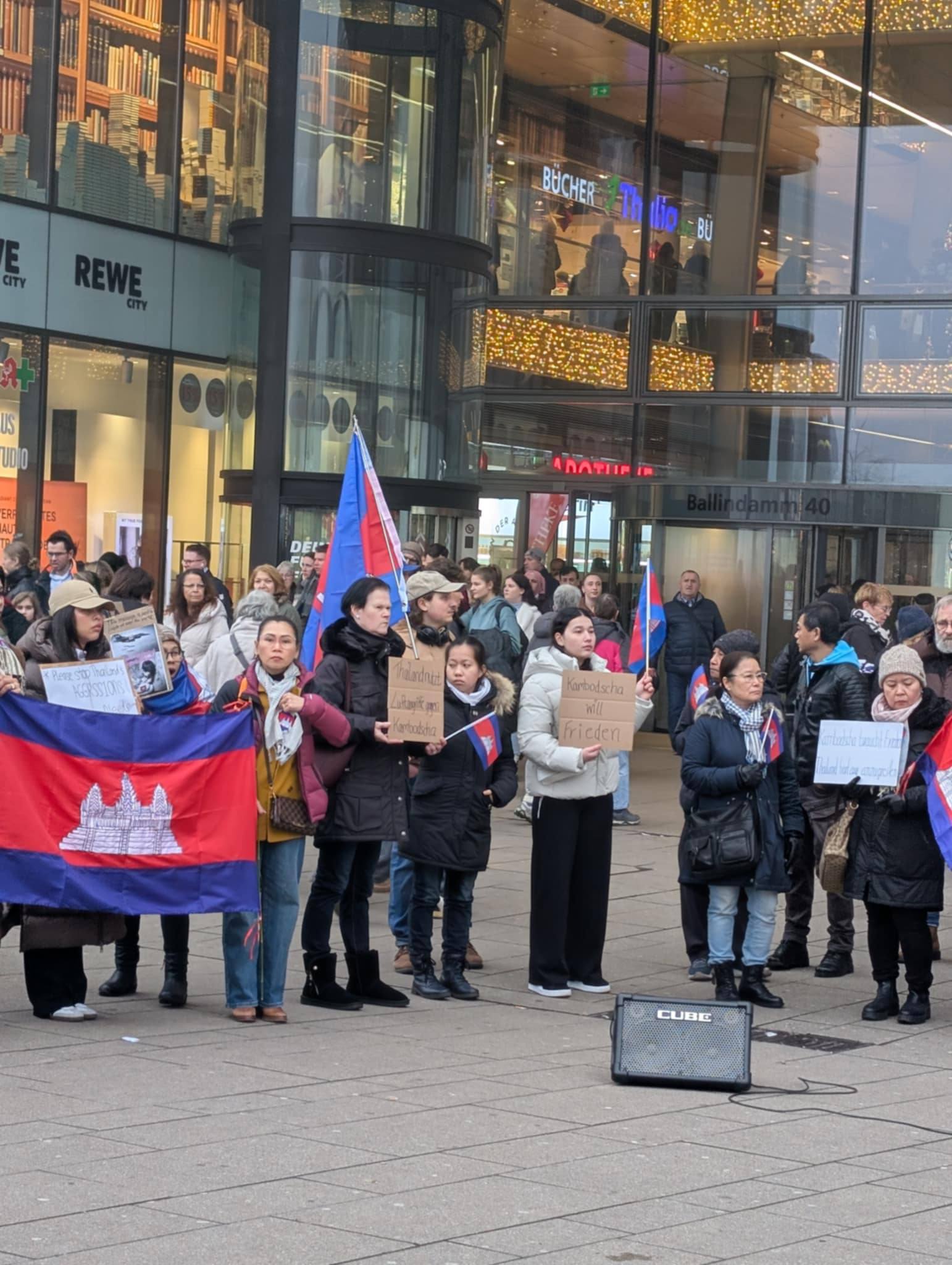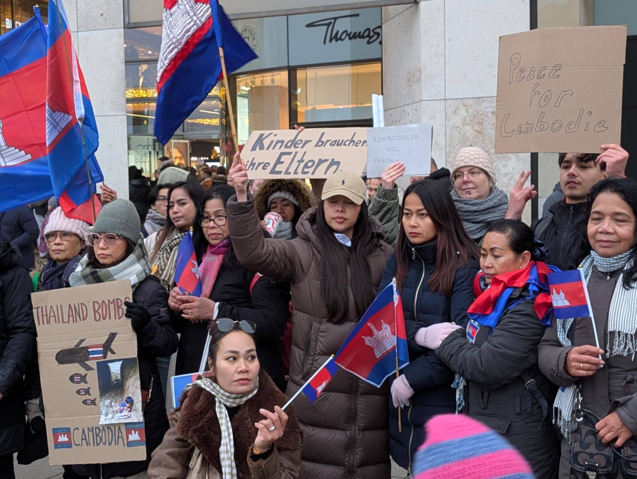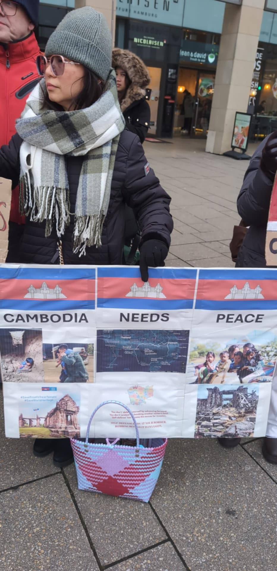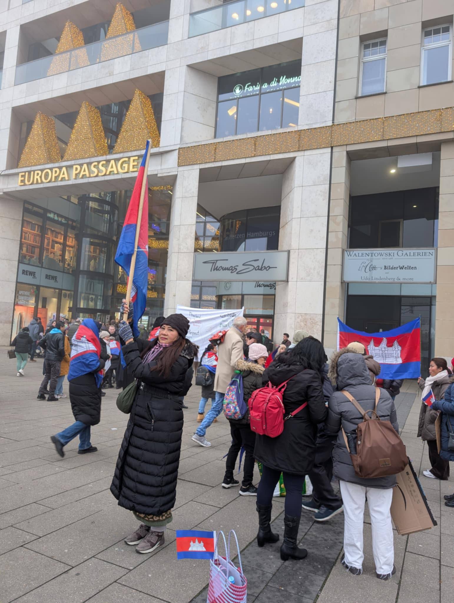 បងប្អូនប្រជាពលរដ្ឋខ្មែររស់នៅទីក្រុង Hamburg ប្រទេសអាល្លឺម៉ង់ នៅថ្ងៃទី២០ ខែធ្នូ ឆ្នាំ២០២៥ បានជួបជុំគ្នាសម្តែងមតិតវ៉ា ចំពោះអំពើឈ្លានពានរបស់ថៃ លើដែនអធិបតេយ្យភាពកម្ពុជា។