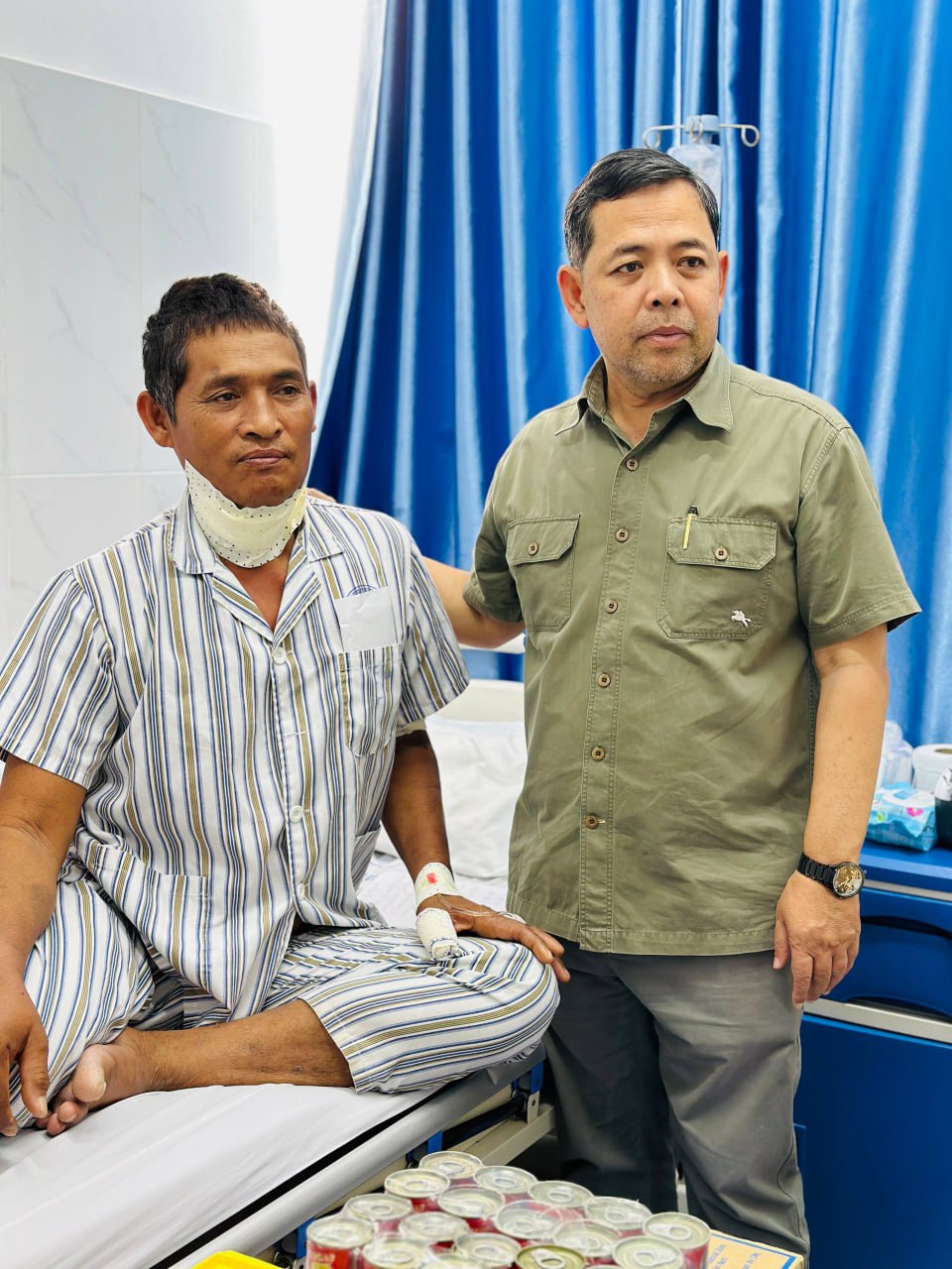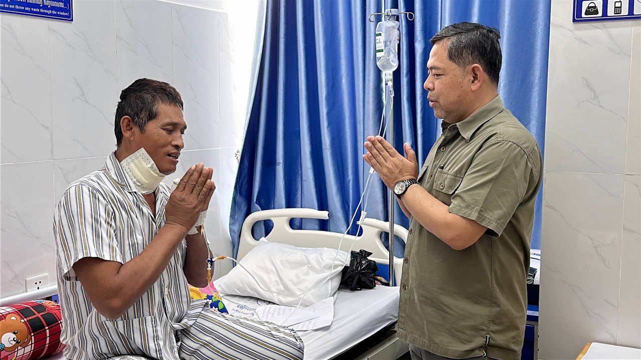ក្នុងការអញ្ជើញចុះសំណេះសំណាលសួរសុខទុក្ខនេះ លោក អភិបាលខណ្ឌបានបង្ហាញ នូវក្ដីអាណិតអាសូរ ដល់កងទ័ពកម្ពុជាដែលបានលះបង់កម្លាំងកាយចិត្ត បំពេញការងារដោយ បេះដូង និងឆន្ទៈខ្ពស់ ការពារ បូរណភាពទឹកដីកម្ពុជា និងជូនពរដល់វីរយុទ្ធជនគ្រប់រូប សូមឆាប់បានជាសះស្បើយឡើងវិញ។
