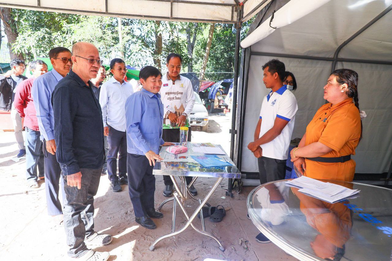 នាព្រឹកថ្ងៃទី២០ ខែធ្នូ ឆ្នាំ២០២៥នេះដែរ បន្ទាប់ពីបានប្រគល់អំណោយជូនរដ្ឋបាលខេត្តព្រះវិហារ ឯកឧត្តម ហេង សួរ រដ្ឋមន្ត្រីក្រសួងការងារ និងបណ្ដុះបណ្ដាលវិជ្ជាជីវៈ រួមជាមួយ ឯកឧត្តម គីម រិទ្ធី អភិបាលនៃគណៈអភិបាលខេត្តព្រះវិហារ និងសហការីបានចុះសួរសុខទុក្ខប្រជាពលរដ្ឋភៀសសឹកមកពីស្រុកជាំក្សាន្ត បាននាំយកអំណោយរបស់ថ្នាក់ដឹកនាំក្រសួង មន្រ្តីរាជការ សប្បុរសជន ម្ចាស់រោងចក្រ សហគ្រាស ក្រុមហ៊ុន ថ្នាក់ដឹកនាំសហជីព បងប្អូនកម្មករនិយោជិត ដែលមានជាអំណោយជាថវិកា និងសម្ភារគ្រឿងឧបភោគបរិភោគ សម្រាប់ផ្តល់ជូនបងប្អូនប្រជាពលរដ្ឋភៀសសឹកចំនួន ២ពាន់គ្រួសារ ស្មើនឹង១២ ០០០នាក់ នៅស្រុកត្បែងមានជ័យ ខេត្តព្រះវិហារ។