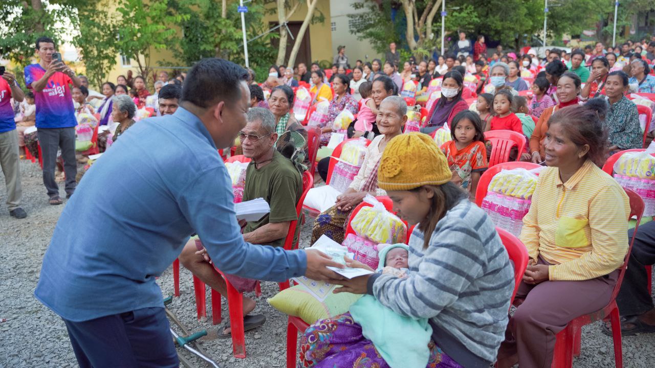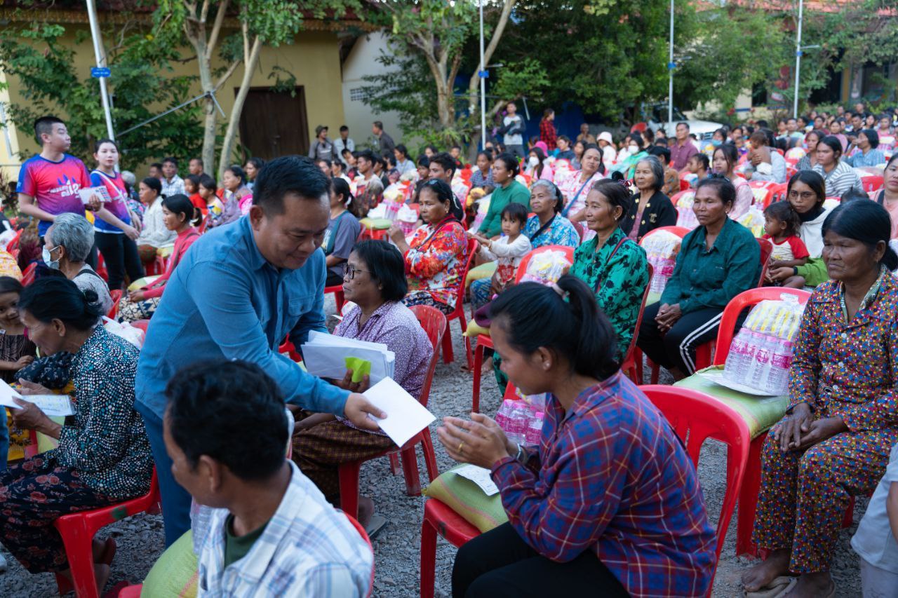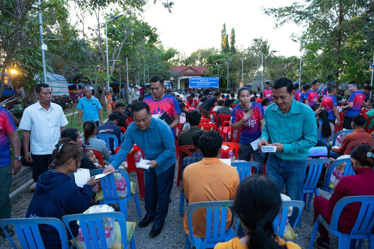 (សៀមរាប)៖ លោកឧត្តមសេនីយ៍ឯក ហេង ធូ អគ្គនាយករងមជ្ឈមណ្ឌលជាតិរក្សាសន្តិភាព និងជាប្រធានក្រុមការងាររាជរដ្ឋាភិបាល ចុះមូលដ្ឋានឃុំខ្នារសណ្ដាយ ស្រុកបន្ទាយស្រី នៅថ្ងៃទី២០ ខែធ្នូ ឆ្នាំ២០២៥ បាននាំយកអំណោយសម្ដេចបវរធិបតី ហ៊ុន ម៉ាណែត នាយករដ្ឋមន្ត្រីនៃកម្ពុជា និងលោកជំទាវបណ្ឌិត ពេជ ចន្ទមុន្នី ហ៊ុនម៉ាណែត ចែកជូនដល់បងប្អូនជនភៀសសឹកជិត ៤០០គ្រួសារ ដែលកំពុងស្នាក់នៅវត្តប្រាសាទនាគគូ ស្រុកបន្ទាយស្រី ខេត្តសៀមរាប។