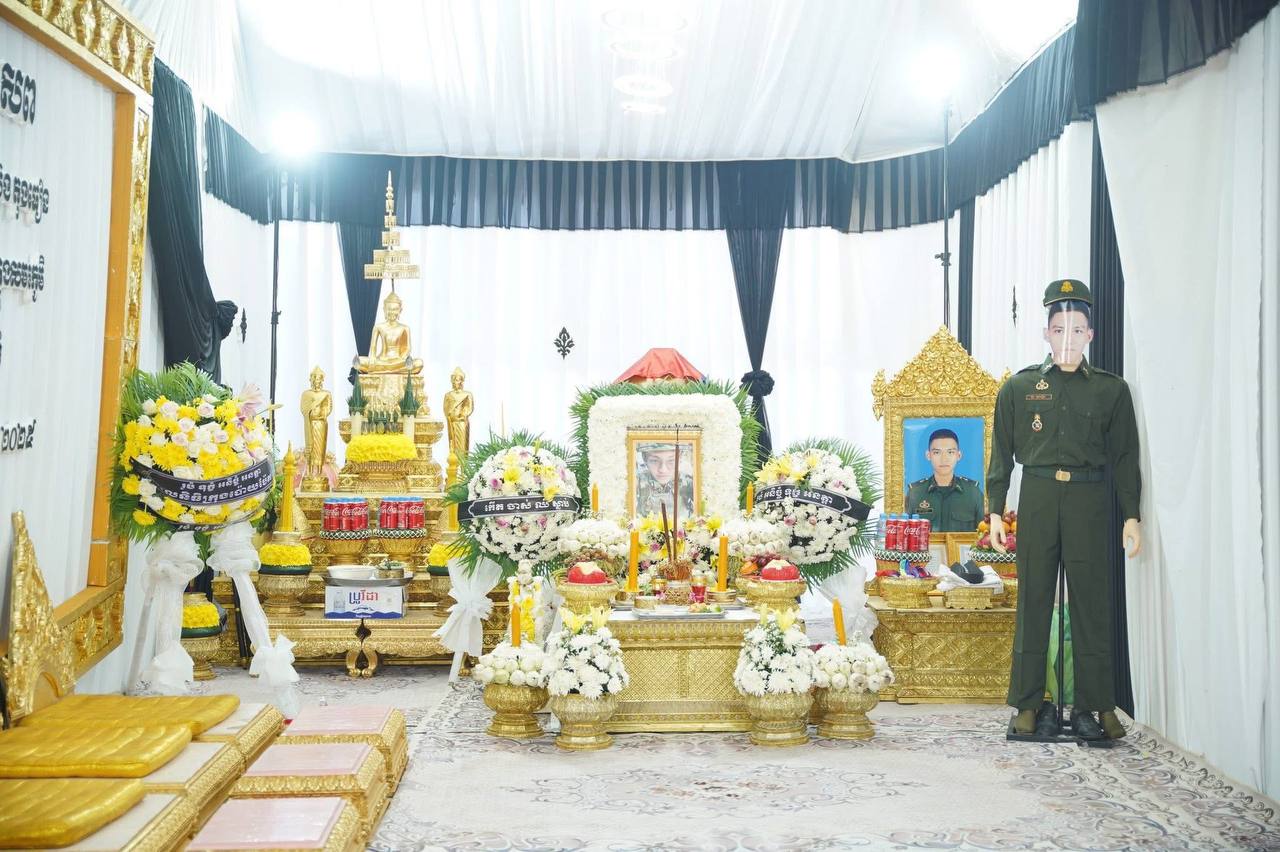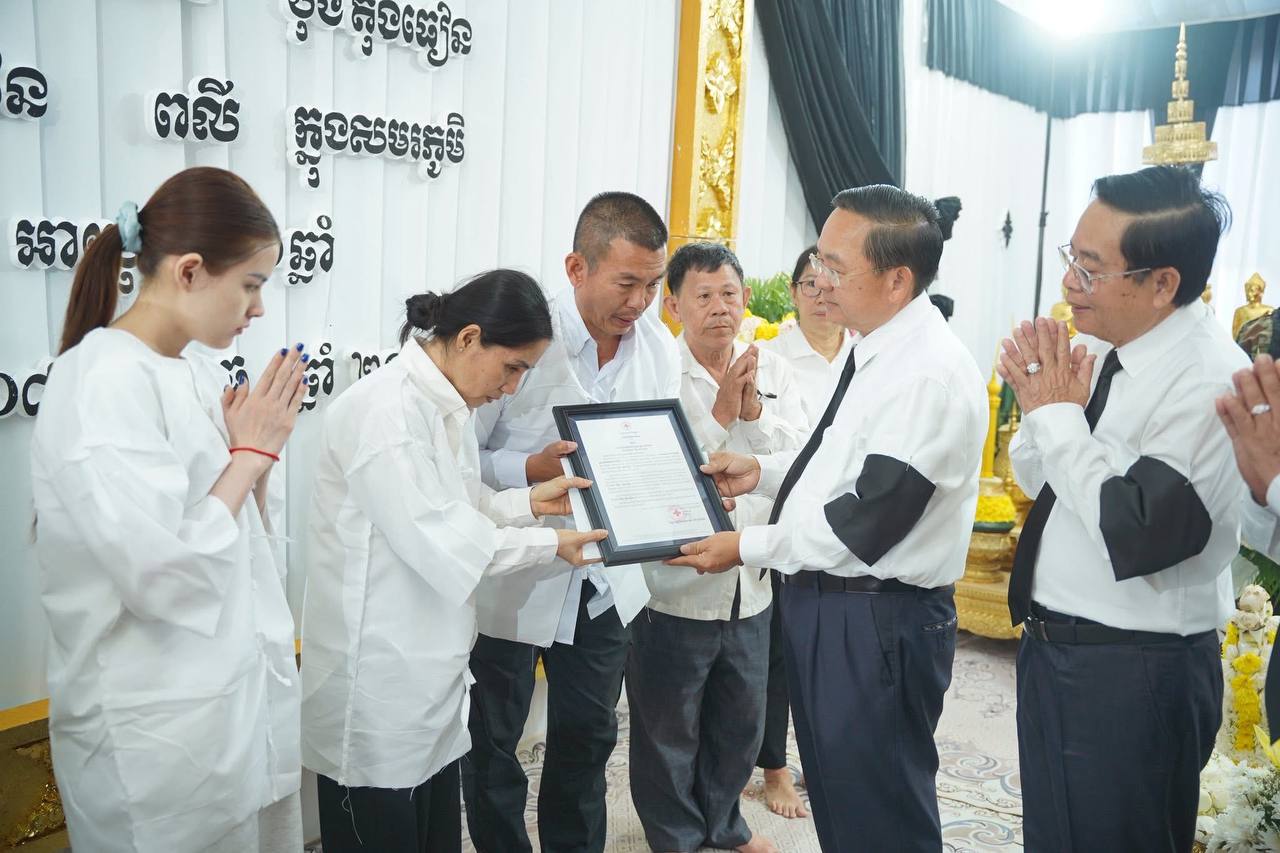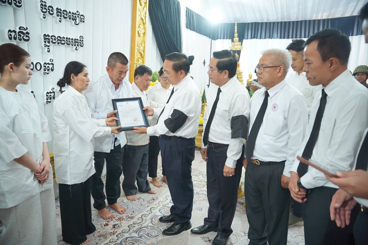 (បាត់ដំបង)៖ ក្នុងសមានទុក្ខក្ដុកក្ដួល ខ្សឹបខ្សួលរំជួលចិត្តឥតឧបមា ចំពោះវីរយុទ្ធជនដ៏អង់អាចក្លាហាន ដែលបានពលីក្នុងសមរភូមិ, កាលពីថ្ងៃទី២០ ខែធ្នូ ឆ្នាំ២០២៥ សម្តេចកិត្តិព្រឹទ្ធបណ្ឌិត ប៊ុន រ៉ានី ហ៊ុនសែន ប្រធានកាកបាទក្រហមកម្ពុជា បានចាត់ឱ្យគណៈប្រតិភូសាខាកាកបាទក្រហមកម្ពុជា ខេត្តបាត់ដំបង ចូលរួមរំលែកទុក្ខដ៏ក្រៀមក្រំបំផុត ជាមួយក្រុមគ្រួសារសព នាយចំណង់ ប៊ុន តុងធៀន ដែលបានពលីក្នុងសមរភូមិ ហើយពិធីបុណ្យសពបានប្រព្រឹត្តទៅតាមប្រពៃណីជាតិខ្មែរនៅគេហដ្ឋាន ស្ថិតក្នុងសង្កាត់រតនៈ ក្រុងបាត់ដំបង ខេត្តបាត់ដំបង។