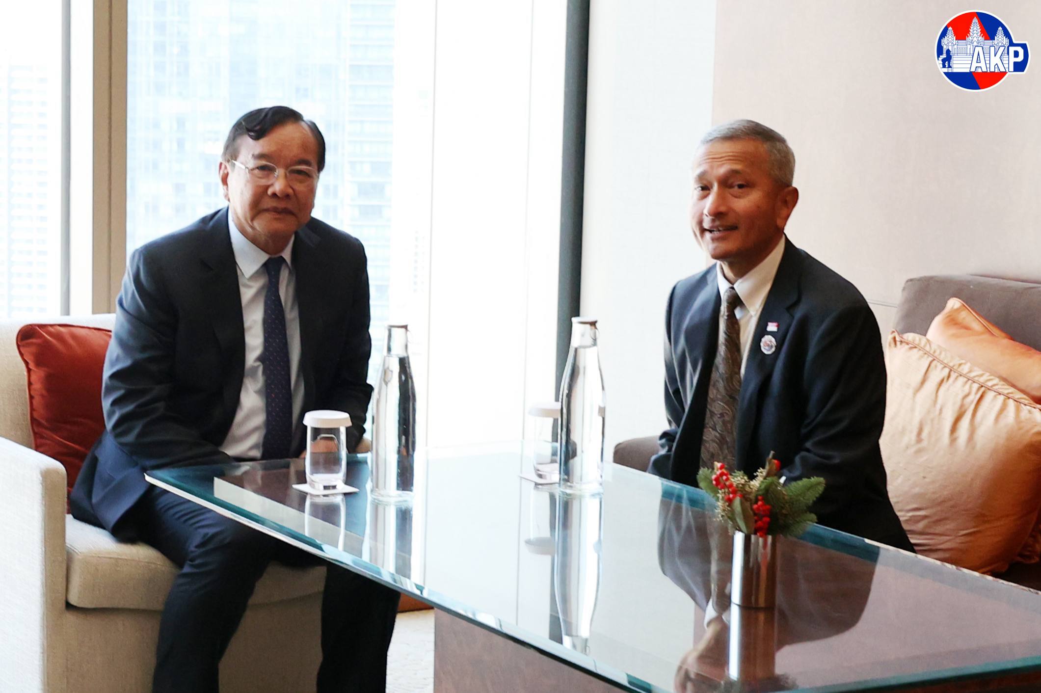 ឯកឧត្តម ប្រាក់ សុខុន ឧបនាយករដ្ឋមន្ត្រី រដ្ឋមន្ត្រីការបរទេស និងសហប្រតិបត្តិការអន្តរជាតិ នៃព្រះរាជាណាចក្រកម្ពុជា អញ្ជើញជួបពិភាក្សាការងារជាមួយឯកឧត្តម Vivian Balakhrisnan រដ្ឋមន្ត្រីការបរទេសសិង្ហបុរី នៅទីក្រុងគូឡាឡាំពួ ប្រទេសម៉ាឡេស៊ី នាព្រឹកថ្ងៃទី២២ ខែធ្នូ ឆ្នាំ២០២៥នេះ មុនកិច្ចប្រជុំពិសេសរដ្ឋមន្ត្រីការបរទេសអាស៊ានស្តីពីស្ថានភាពបច្ចុប្បន្ន រវាងកម្ពុជា និងថៃ ដែលនឹងប្រព្រឹត្តទៅនៅថ្ងៃទី២២ ខែធ្នូ ឆ្នាំ២០២៥ នៅទីក្រុងគូឡាឡាំពួ។