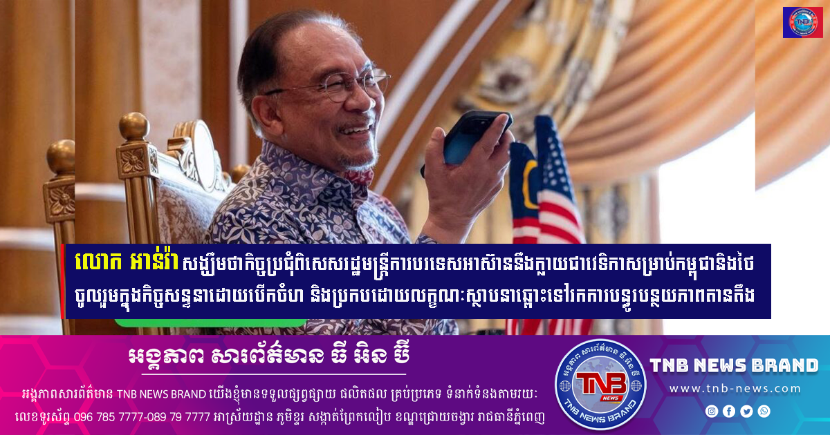 លោក អាន់វ៉ា សង្ឃឹមថាកិច្ចប្រជុំពិសេសរដ្ឋមន្ត្រីការបរទេសអាស៊ាននឹងក្លាយជាវេទិកាសម្រាប់កម្ពុជា និងថៃចូលរួមក្នុងកិច្ចសន្ទនាដោយបើកចំហ និងប្រកបដោយលក្ខណៈស្ថាបនាឆ្ពោះទៅរកការបន្ធូរបន្ថយភាពតានតឹង