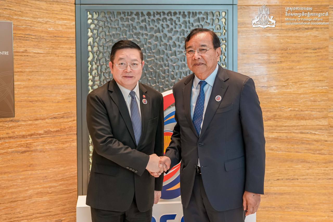 (AKP) មុននឹងអញ្ជើញមាតុភូមិនិវត្តន៍វិញ ឯកឧត្តមឧបនាយករដ្ឋមន្ត្រី ប្រាក់ សុខុន រដ្ឋមន្ត្រីការបរទេស និងសហប្រតិបត្តិការអន្តរជាតិ បានអញ្ជើញជួបពិភាក្សាការងារជាមួយ ឯកឧត្តមបណ្ឌិត កៅ គឹមហួន អគ្គលេខាធិការអាស៊ាន អំឡុងពេលនៃការចូលរួមកិច្ចប្រជុំពិសេសរដ្ឋមន្ត្រីការបរទេសអាស៊ាន ស្តីពីស្ថានភាពបច្ចុប្បន្នរវាងកម្ពុជា និងថៃ នៅទីក្រុងគូឡាឡាំពួ ប្រទេសម៉ាឡេស៊ី។
