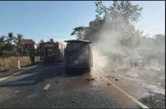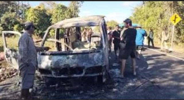 រថយន្តដែលរងគ្រោះគឺជាប្រភេទរថយន្ត សាំយ៉ុង (SsangYong) ដែលកំពុងដឹកអំណោយ និងស្បៀងអាហារបម្រុងយកទៅជួយសង្គ្រោះបងប្អូនជនភៀសសឹក។ ប៉ុន្តែជាអកុសល ពេលធ្វើដំណើរមកដល់ចំណុចខាងលើ ក៏ស្រាប់តែមានអណ្តាតភ្លើងឆាបឆេះយ៉ាងសន្ធោសន្ធៅតែម្តង។