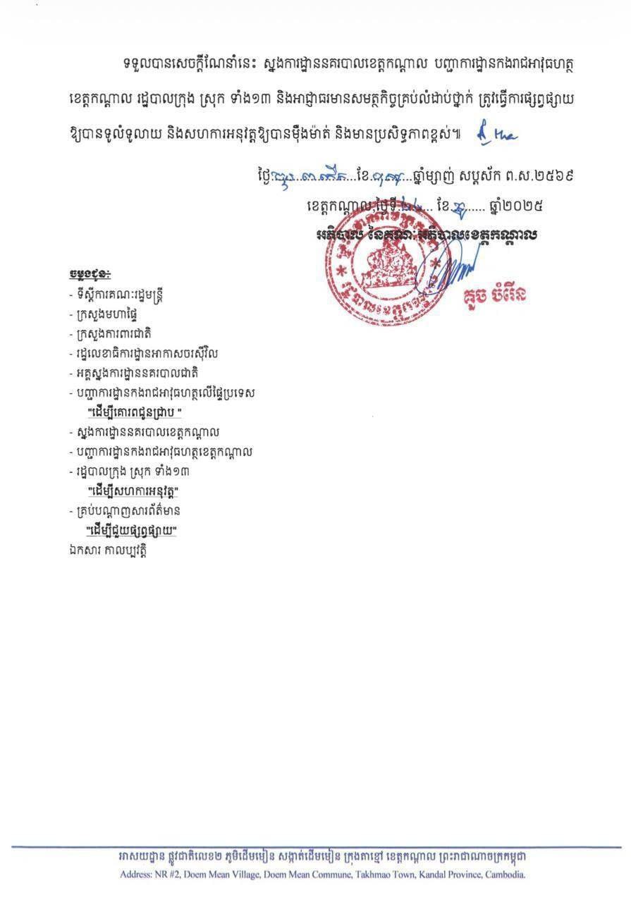 រដ្ឋបាលខេត្តកណ្ដាល ហាមឃាត់ការបង្ហោះដ្រូនគ្រប់ប្រភេទ។