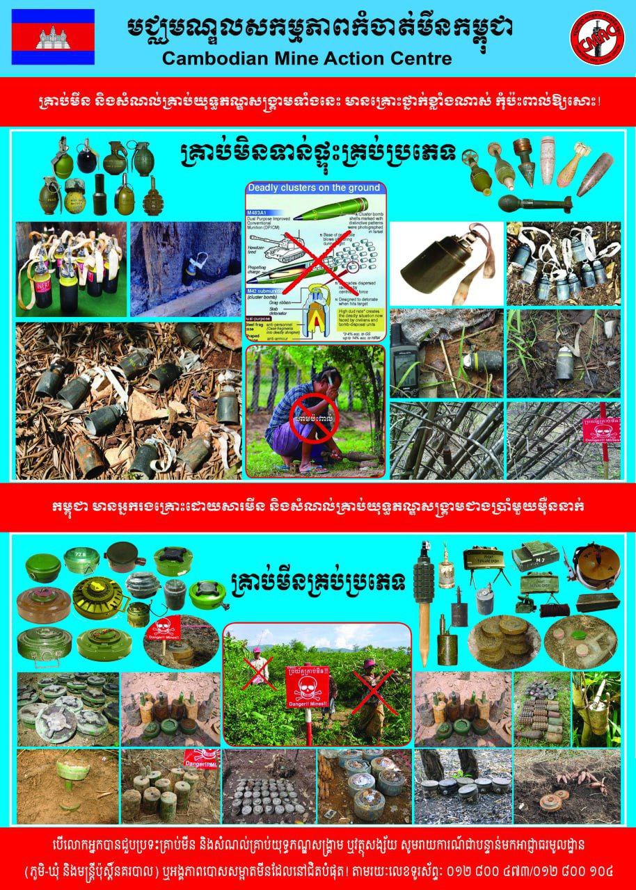 ប្រសិនបើជួបវត្ថុសង្ស័យនានា សូមកុំប៉ះពាល់ហើយរាយការណ៍ទៅអង្គភាពCMAC។ សូមកុំចូលក្នុងតំបន់ព្រៃ ឬតំបន់ដែលសង្ស័យថា មានគ្រាប់យុទ្ធភណ្ឌមិនទាន់ផ្ទុះ។
