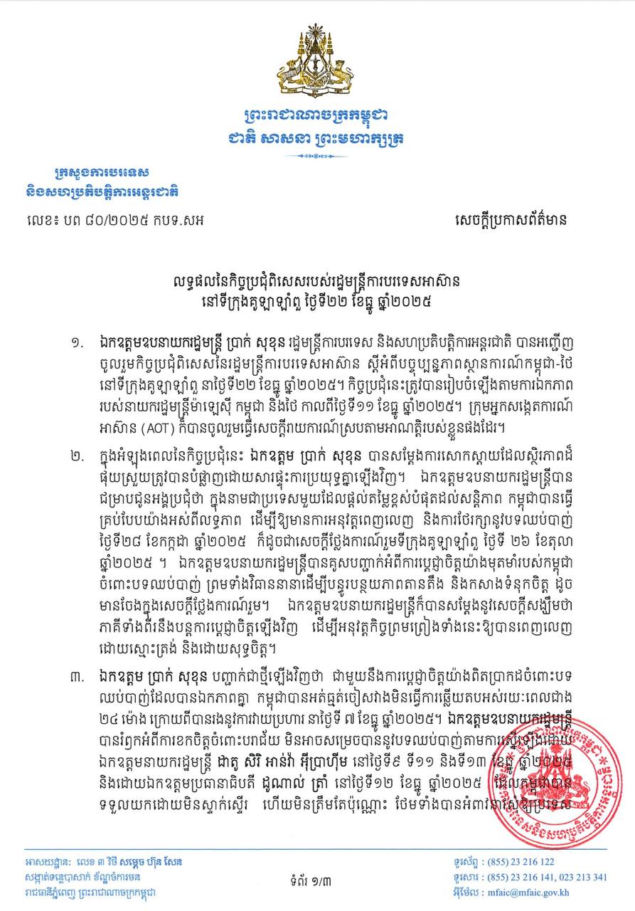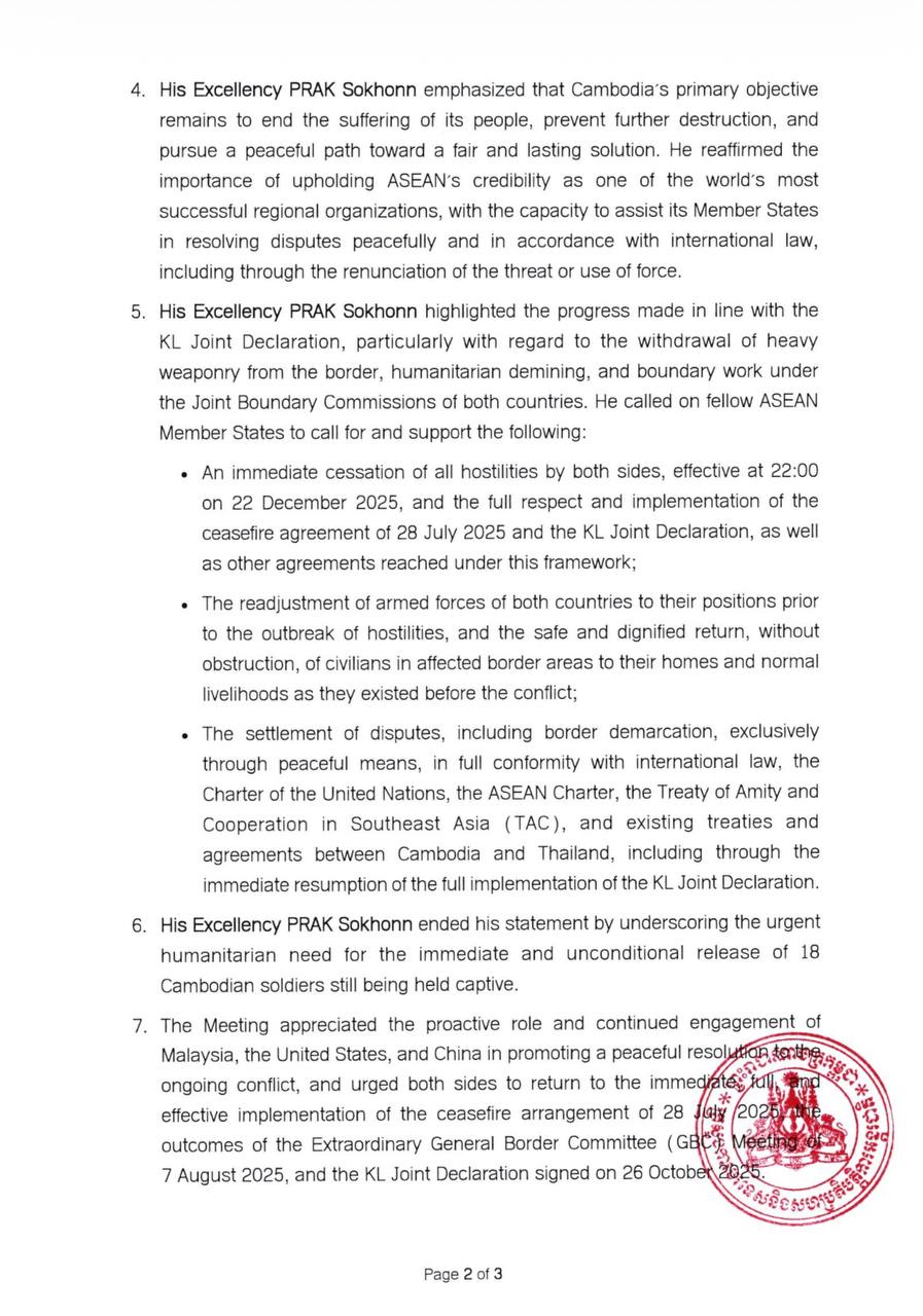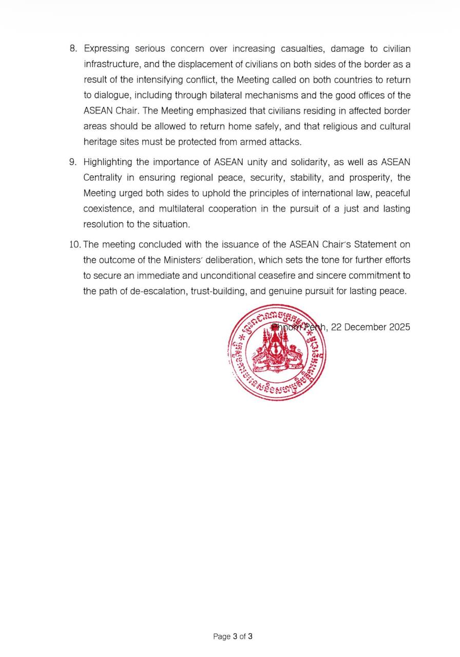 លទ្ធផលនៃកិច្ចប្រជុំពិសេសរបស់រដ្ឋមន្ត្រីការបរទេសអាស៊ាន នៅទីក្រុងគូឡាឡាំពួ ថ្ងៃទី២២ ខែធ្នូ ឆ្នាំ២០២៥