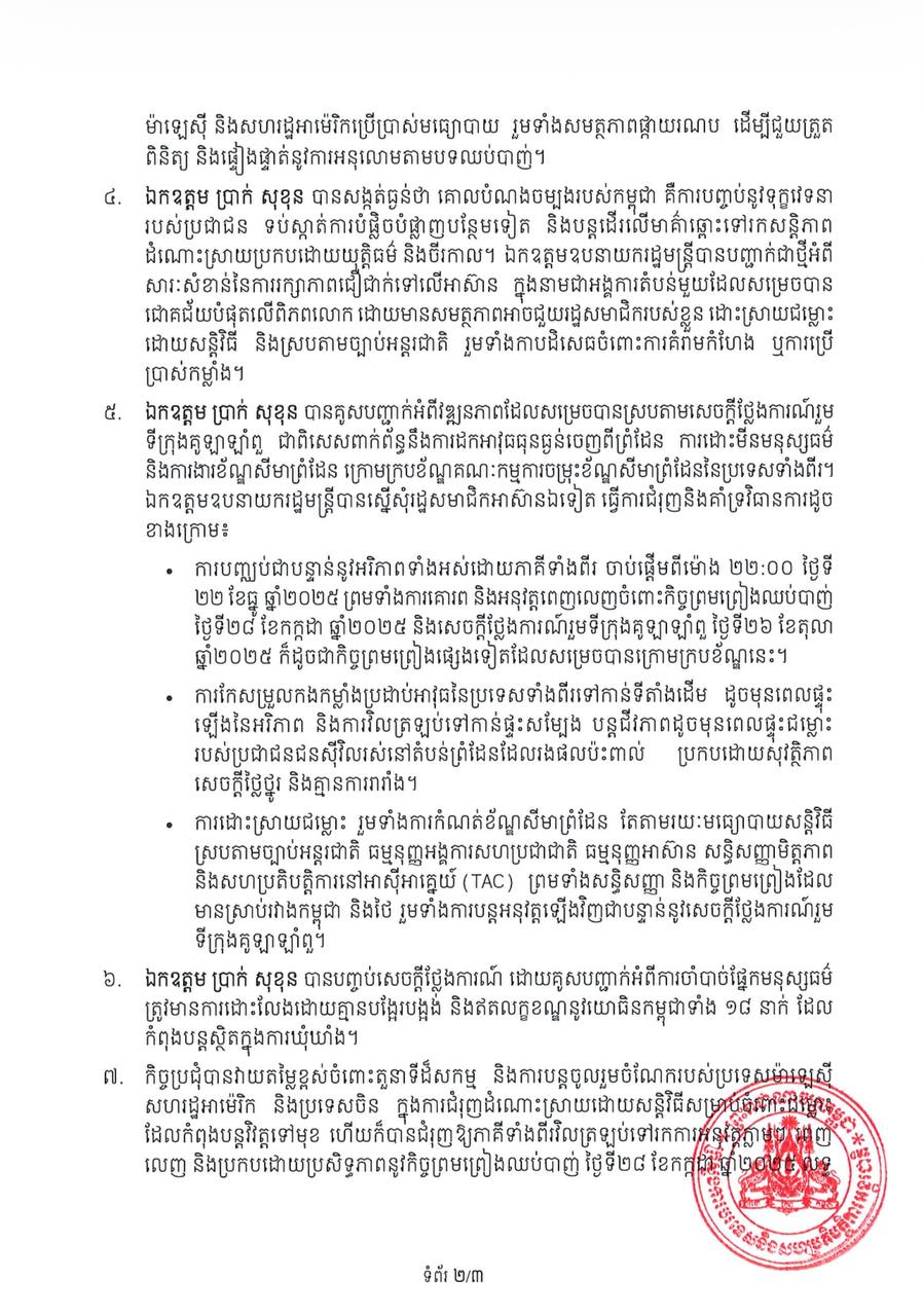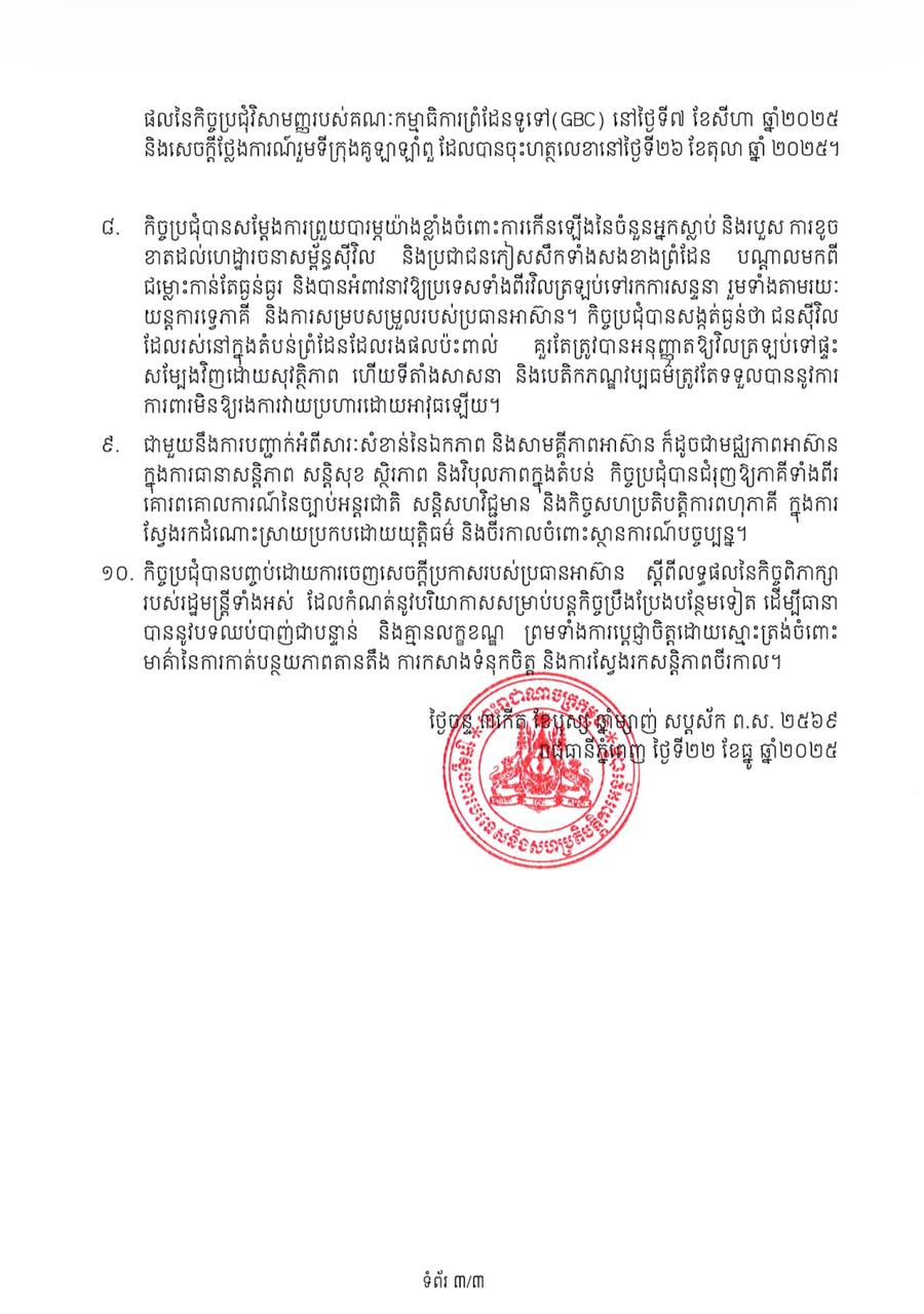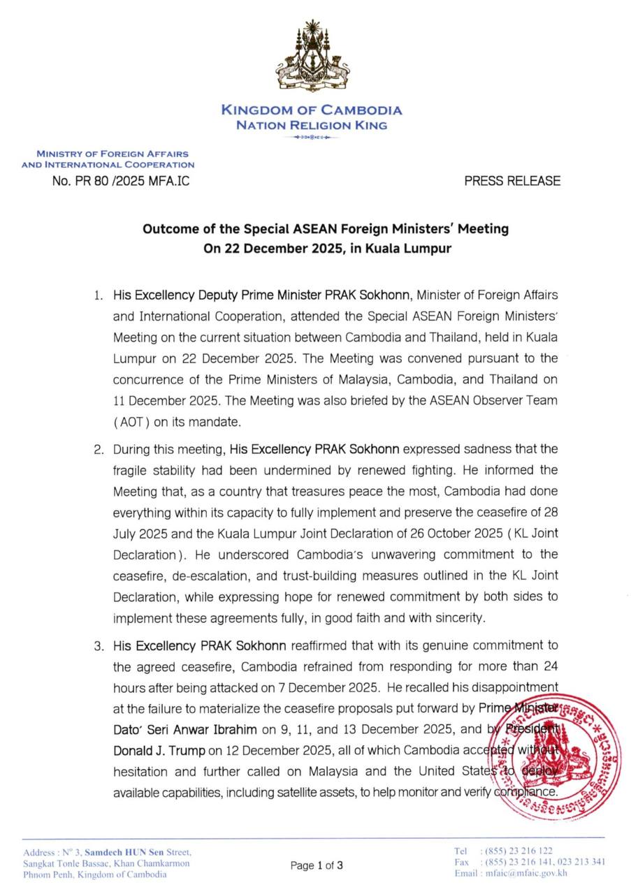 លទ្ធផលនៃកិច្ចប្រជុំពិសេសរបស់រដ្ឋមន្ត្រីការបរទេសអាស៊ាន នៅទីក្រុងគូឡាឡាំពួ ថ្ងៃទី២២ ខែធ្នូ ឆ្នាំ២០២៥