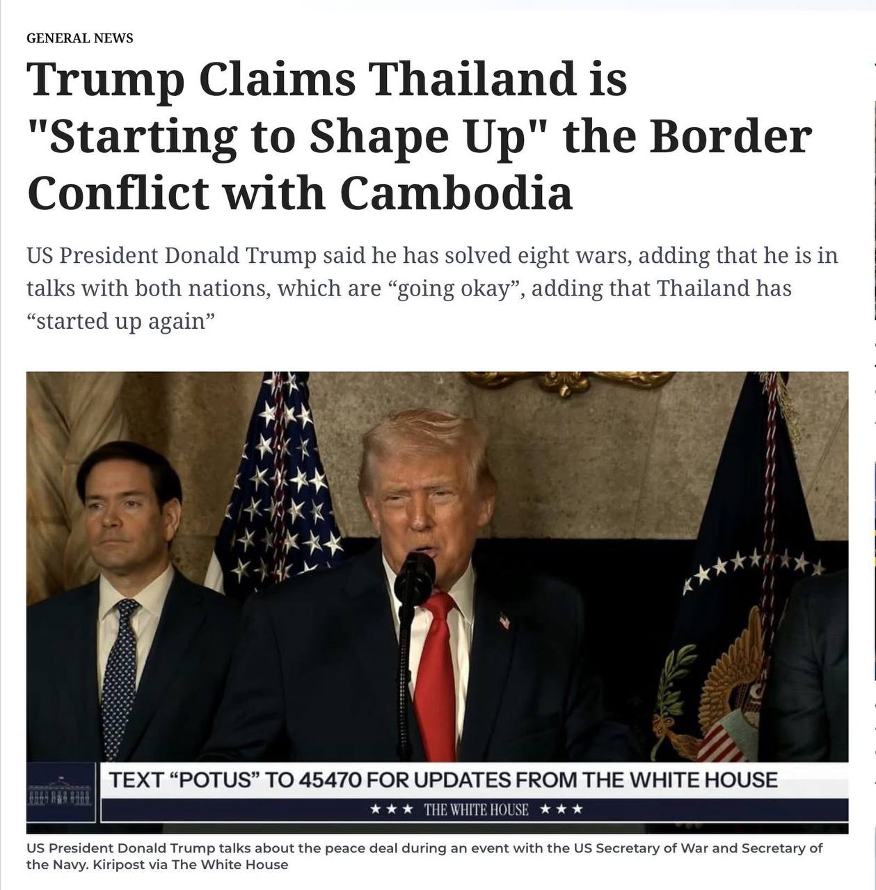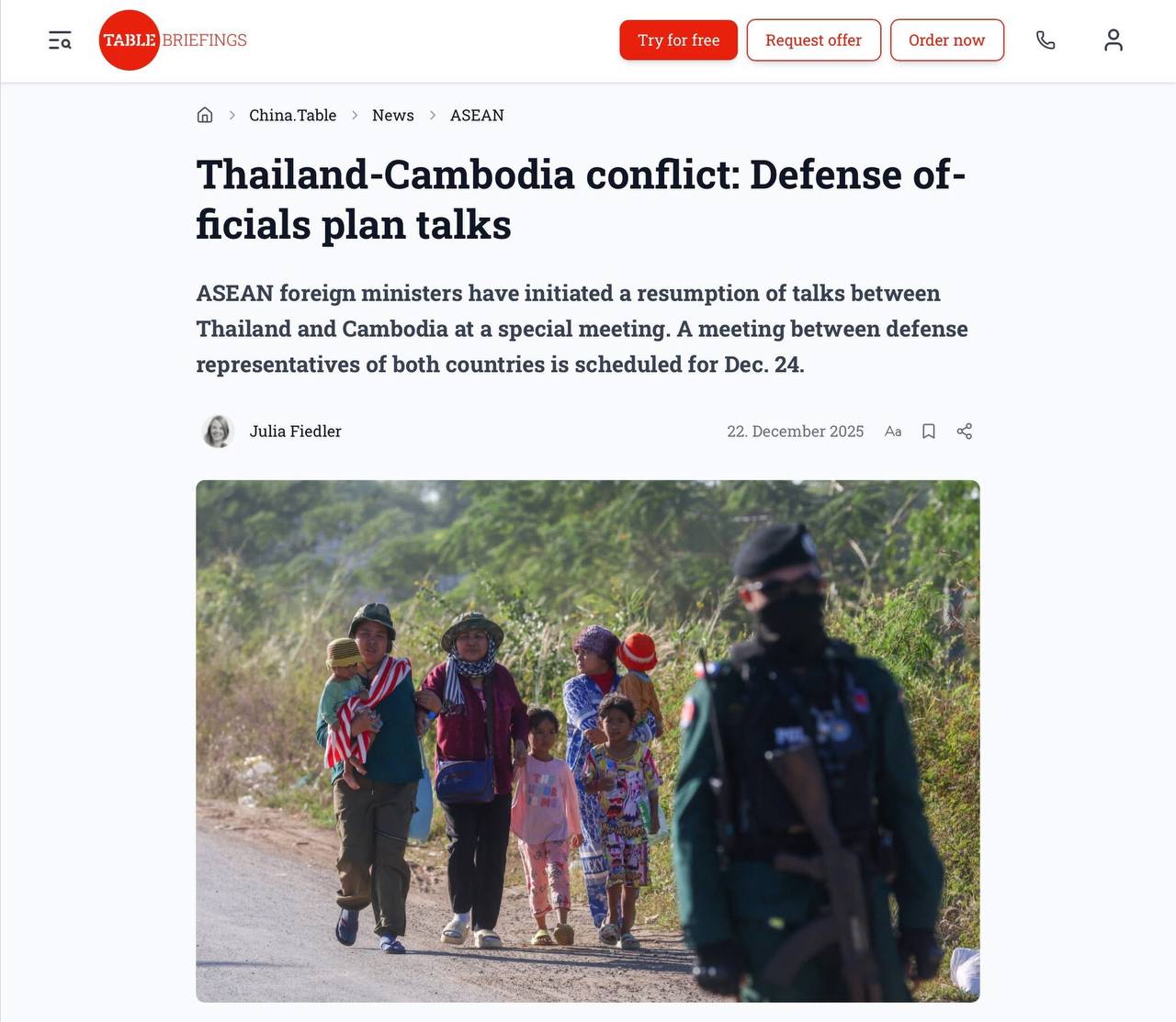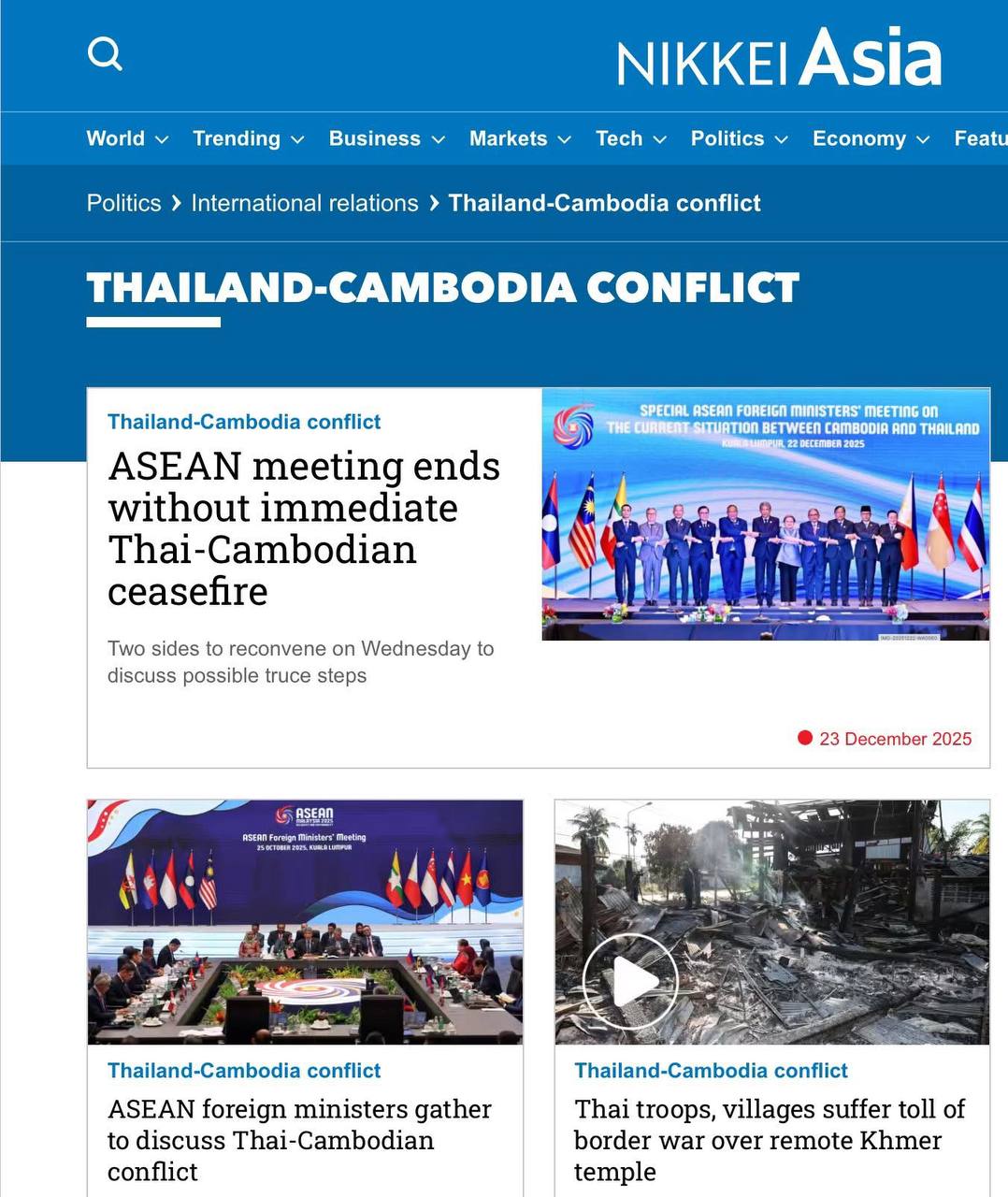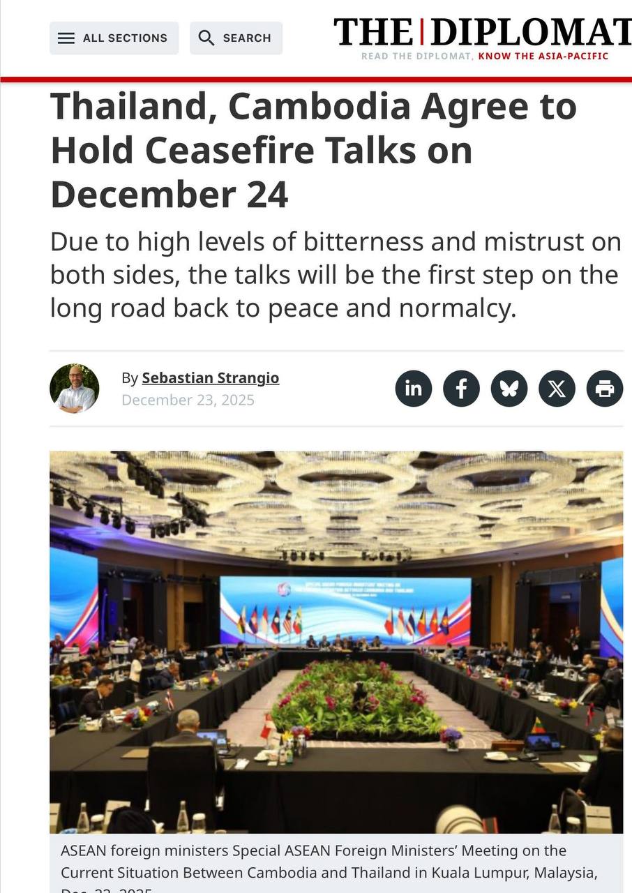 ឯកឧត្តមនេត្រ ភក្ត្រា រដ្ឋមន្ត្រីក្រសួងព័ត៌មាន៖ «នៅថ្ងៃទី២៣ ធ្នូ ឆ្នាំ២០២៥ នេះដែលជាថ្ងៃទី១៧ នៃការឈ្លានពានរបស់យោធាថៃមកលើទឹកដីកម្ពុជា សារព័ត៌មានអន្តរជាតិនិងអន្តរជាតិនៅតែផ្តោតលើបញ្ហានេះ។ ចំណងជើងធំៗរបស់សារព័ត៌មានបរទេស «កម្ពុជាស្នើឱ្យមានកិច្ចប្រជុំ GBC នៅទីក្រុងគួឡាឡាំពួ, ឯកឧត្តមប្រធានាធិបតី ដូណាល់ ត្រាំ បានអះអាងថាថៃបានចាប់ផ្តើមសង្គ្រាមជាមួយកម្ពុជាជាថ្មី» ត្រូវបានរំលេចឡើង។ ជាមួយគ្នានេះក៏បានលើកពីលទ្ធផលនៃកិច្ចប្រជុំពិសេសរដ្ឋមន្ត្រីការបរទេសអាស៊ានកាលពីថ្ងៃទី២២ ខែធ្នូ ឆ្នាំ២០២៥ កន្លងទៅ។ សកម្មភាពឈ្លានពានប្រដាប់អាវុធរបស់យោធាថៃមកលើអធិបតេយ្យនិងបូរណភាពទឹកដីកម្ពុជាចូលដល់សបា្តហ៍ទី៣ សារព័ត៌មានជាតិនិងពិភពលោកបន្តផ្តោតការរាយការណ៍ពីសង្គ្រាមឈ្លានពាននេះ។ សង្គ្រាមឈ្លានពានដែលបានបង្កឱ្យជនស៊ីវិលកម្ពុជាបានស្លាប់ចំនួន ២១ នាក់ត្រឹមថ្ងៃទី២៣ ខែធ្នូ នេះ និងមានរបួសជាង ៨០ នាក់ និងជនភៀសសឹកជាងកន្លះលាននាក់ ៕