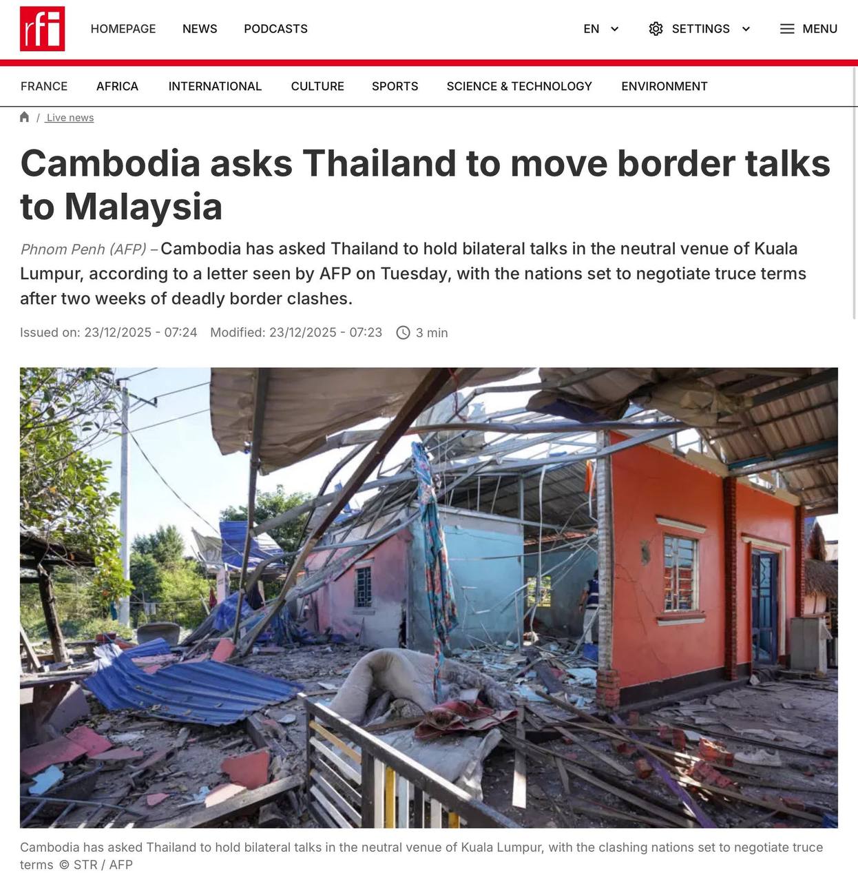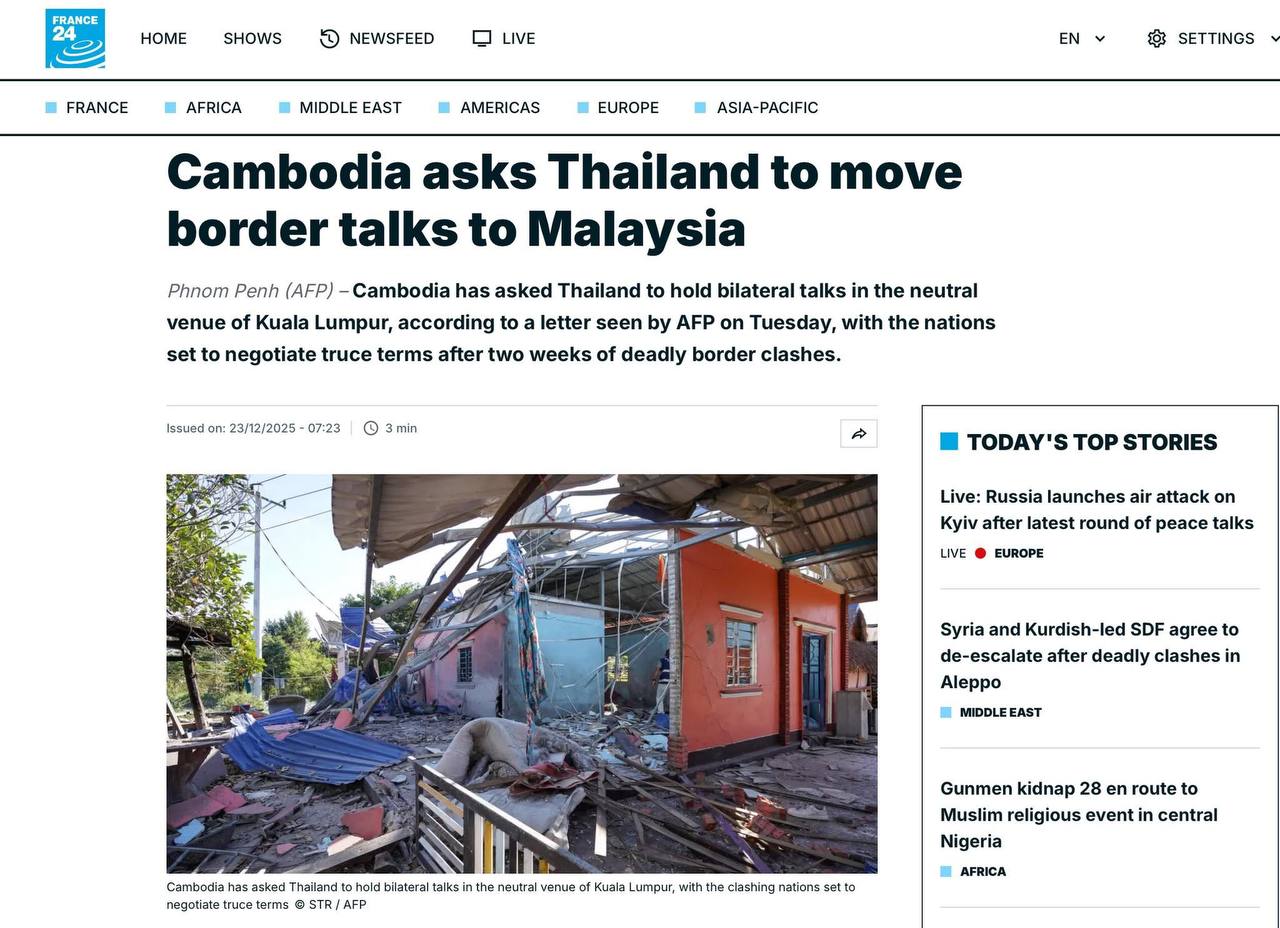 ឯកឧត្តមនេត្រ ភក្ត្រា រដ្ឋមន្ត្រីក្រសួងព័ត៌មាន ៖ នៅថ្ងៃទី២៣ ធ្នូ ឆ្នាំ២០២៥ នេះ ដែលជាថ្ងៃទី១៧ នៃការឈ្លានពានរបស់យោធាថៃមកលើទឹកដីកម្ពុជា សារព័ត៌មានអន្តរជាតិនិងអន្តរជាតិ នៅតែផ្តោតលើបញ្ហានេះ