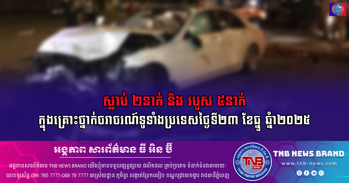 ស្លាប់២នាក់ និងរបួស៥នាក់ ក្នុងគ្រោះថ្នាក់ចរាចរណ៍ទូទាំងប្រទេសថ្ងៃទី២៣ ខែធ្នូ ឆ្នំា២០២៥