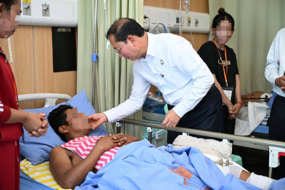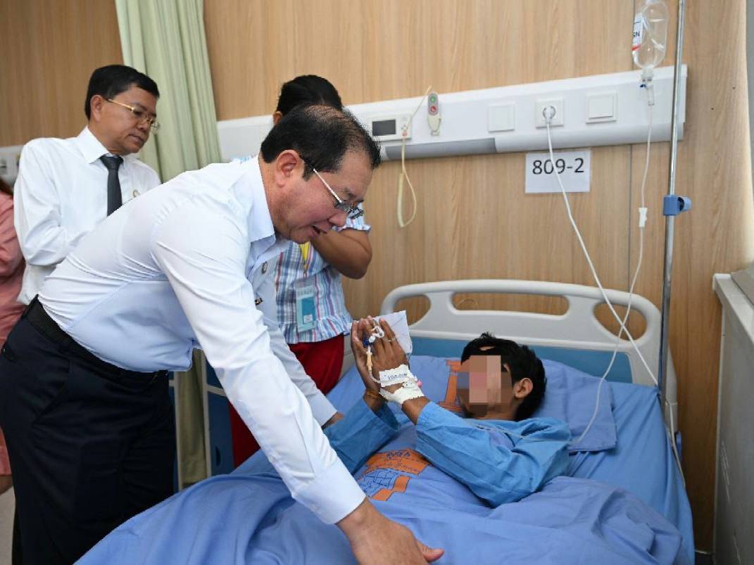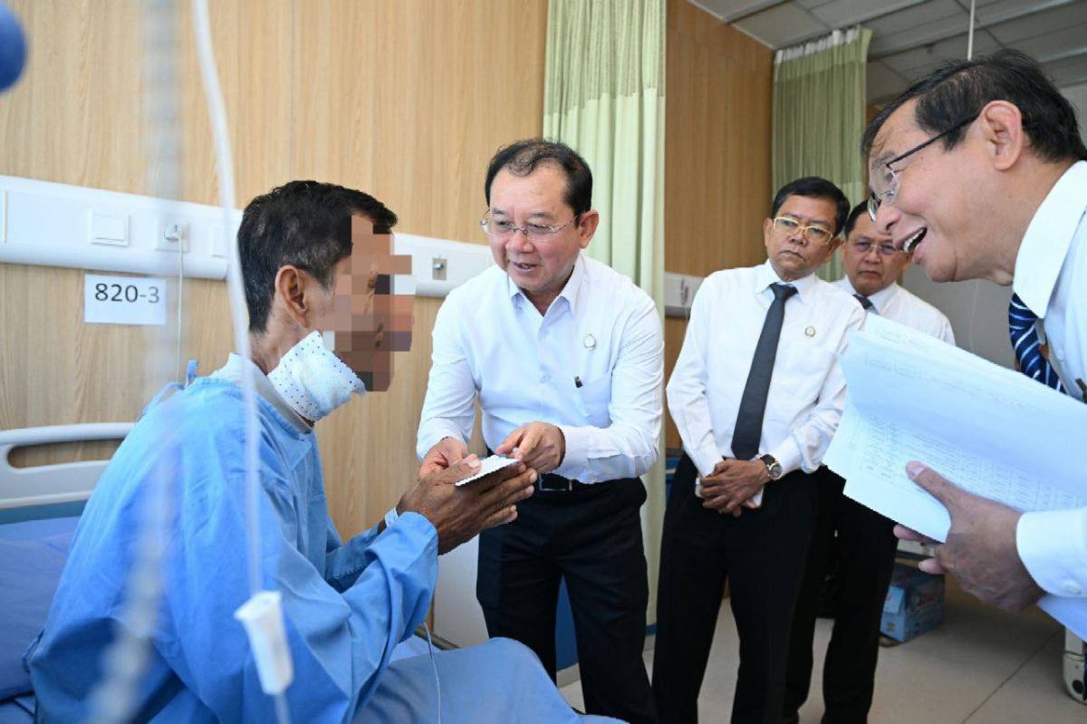 ក្នុងឱកាសចុះពិនិត្យ ឯកឧត្តមសាស្រ្តាចារ្យ បានពាំនាំនូវពាក្យផ្តាំផ្ញើ សួរសុខទុក្ខដោយក្តីបារម្ភដ៏ខ្ពង់ខ្ពស់បំផុតរបស់ សម្ដេចអគ្គមហាសេនាបតីតេជោ ហ៊ុន សែន ប្រធានព្រឹទ្ធសភា និង សម្ដេចកិត្តិព្រឹទ្ធបណ្ឌិត ប៊ុន រ៉ានី ហ៊ុនសែន ប្រធានកាកបាទក្រហមកម្ពុជា ព្រមទាំង សម្ដេចមហាបវរធិបតី ហ៊ុន ម៉ាណែត នាយករដ្ឋមន្ត្រីនៃព្រះរាជាណាចក្រកម្ពុជា និងលោកជំទាវ សូមជូនពរដល់បងប្អូនវីរកងទាំងអស់ សូមឆាប់ជាសះស្បើយ មានសុខភាពប្រសើរឡើង ដើម្បីឆាប់បានវិលត្រឡប់ជួបជុំគ្រួសារ និងបន្តបេសកកម្មដ៏ឧត្តុង្គឧត្តមក្នុងការការពារជាតិមាតុភូមិ៕