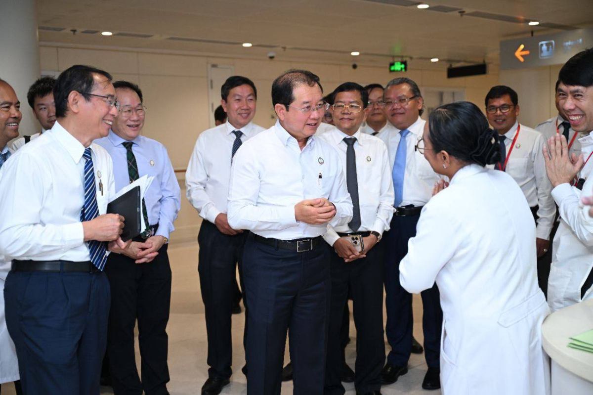 ឯកឧត្តមសាស្រ្តាចារ្យរដ្ឋមន្រ្តី បានជួបប្រជុំជាមួយថ្នាក់ដឹកនាំ និងក្រុមគ្រូពេទ្យនៃមន្ទីរពេទ្យមិត្តភាពកម្ពុជា-ចិន ព្រះកុសុមៈ ជាមួយក្រុមគ្រូពេទ្យពហុជំនាញ ឯកទេស ដើម្បីពិនិត្យពីវឌ្ឍនភាព និងតាមដានស្ថានភាពជំងឺឱ្យកាន់តែឆាប់បានជាសះស្បើយ និងឆាប់បានវិលត្រឡប់ទៅជួបជុំក្រុមគ្រួសារវិញ។