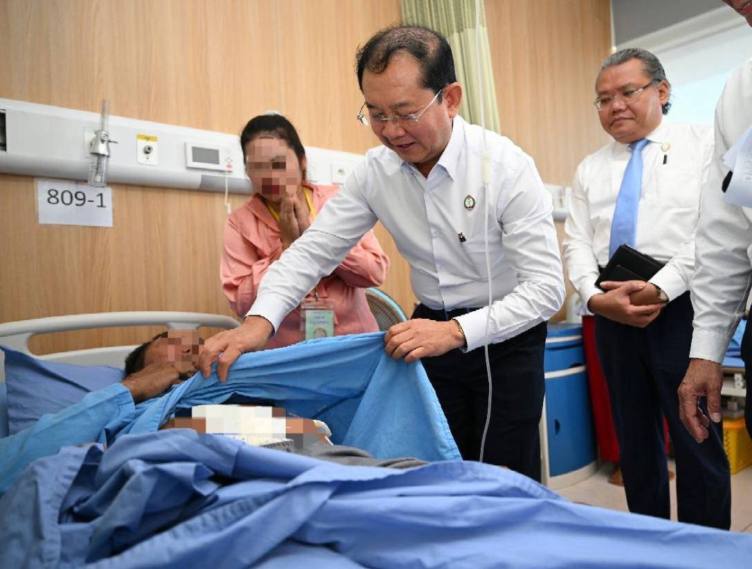 ភ្នំពេញ ៖ នាថ្ងៃពុធ ទី២៤ ខែធ្នូ ឆ្នាំ២០២៥ ឯកឧត្តមសាស្រ្តាចារ្យ ឈាង រ៉ា រដ្ឋមន្រ្តីក្រសួងសុខាភិបាល និងថ្នាក់ដឹកនាំក្រសួងសុខាភិបាល អញ្ជើញចុះសួរសុខទុក្ខវីរកងទ័ព ដែលកំពុងសម្រាកព្យាបាល នៅមន្ទីរពេទ្យមិត្តភាពកម្ពុជា-ចិន ព្រះកុសុមៈ។