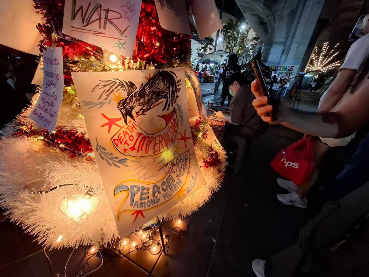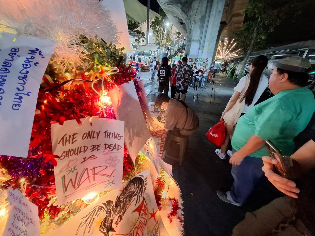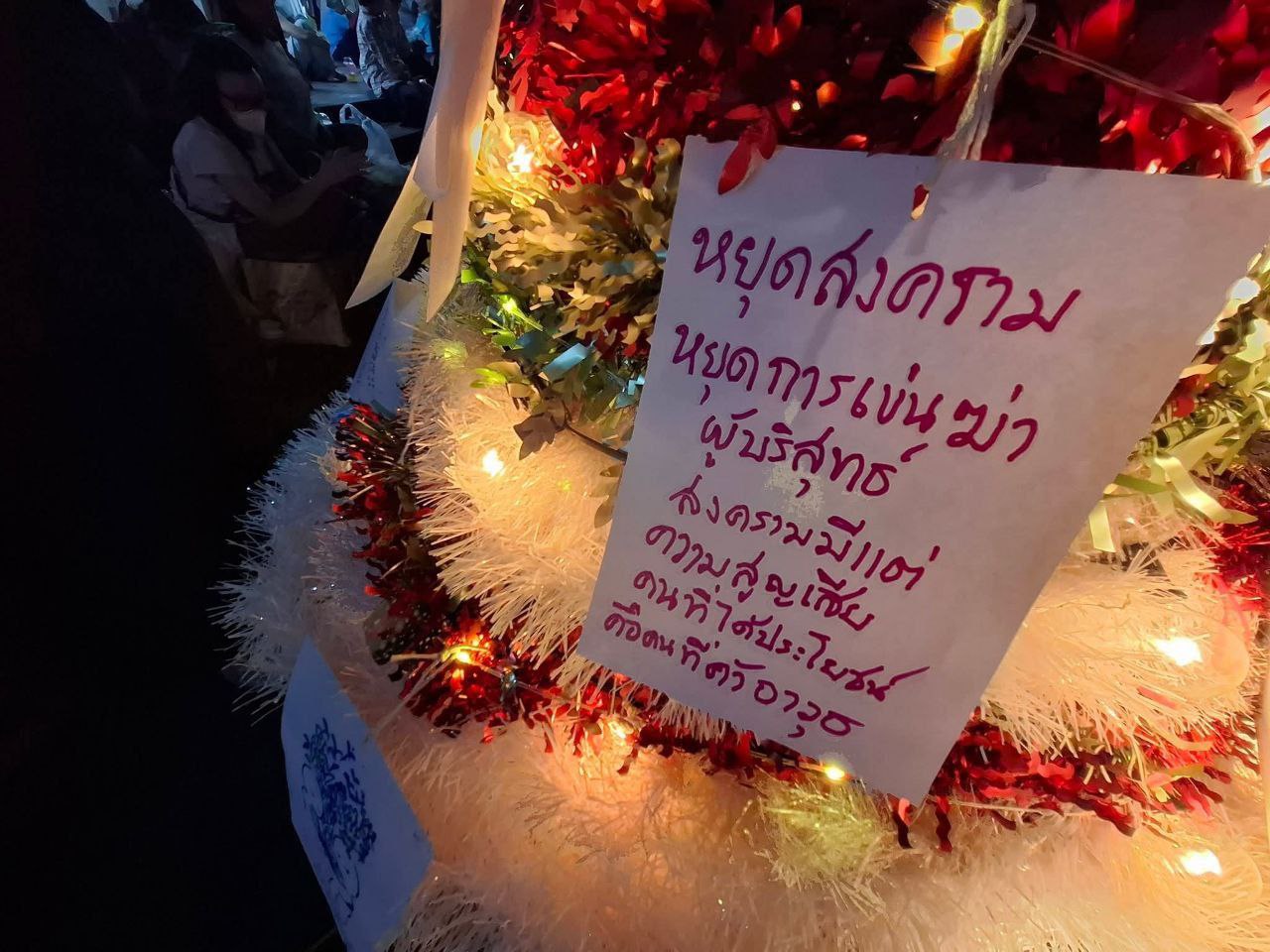 ក្រុមបាតុករប្រឆាំងសង្គ្រាមនៅប្រទេសថៃបានប្រមូលផ្តុំគ្នានៅវិមានជ័យជំនះនៅយប់ថ្ងៃព្រហស្បតិ៍ ទី២៥ ខែធ្នូ ដើម្បីអំពាវនាវឱ្យមានសន្តិភាពរវាងប្រទេសថៃ និងប្រទេសកម្ពុជា បន្ទាប់ពីសង្គ្រាមព្រំដែនរយៈពេល ១៨ថ្ងៃ។