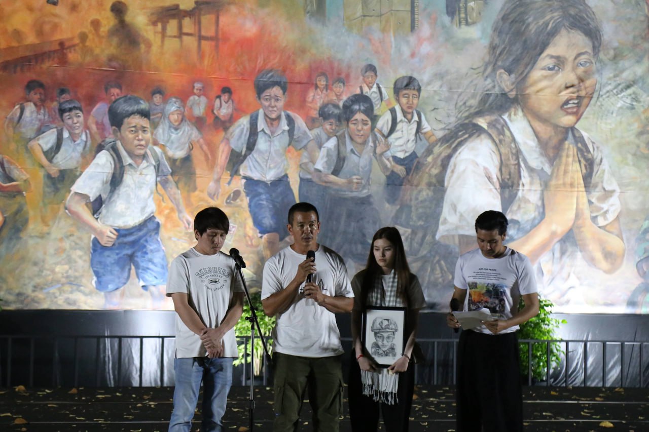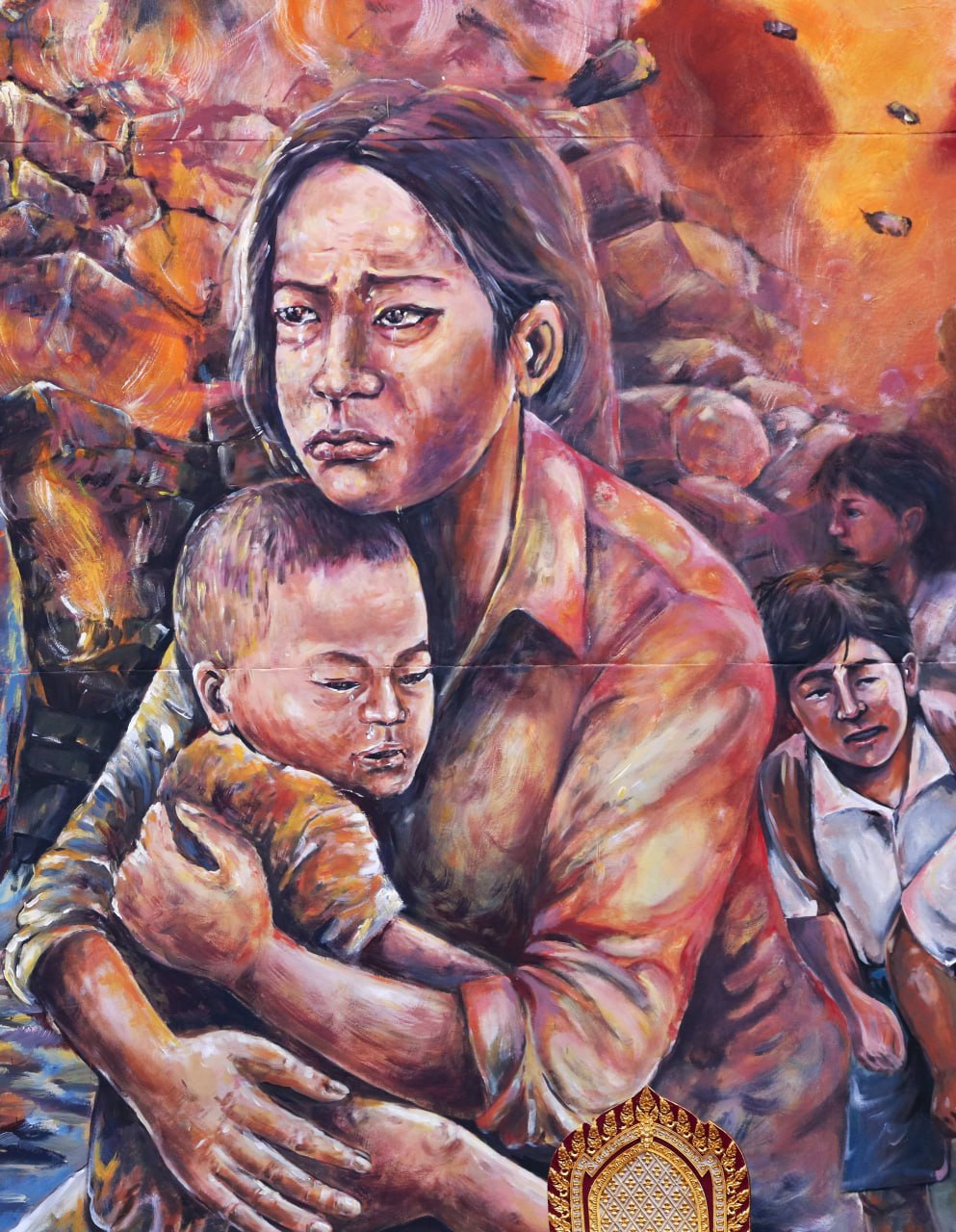 សៀមរាប ថ្ងៃទី២៦ ខែធ្នូ ឆ្នាំ២០២៥ ទឹកភ្នែករាប់លានដំណក់បានស្រក់ នៅពេលឃើញផ្ទាំងគំនូរមួយផ្ទាំង ក្រោមប្រធានបទ “សិល្បៈដើម្បីសន្តិភាព” ដែលបង្ហាញពីការឈឺចាប់ឥតគណនា របស់ប្រជាជាតិខ្មែរ ដែលបង្កដោយសង្គ្រាមឈ្លានពានរបស់ថៃ មកលើកម្ពុជា។