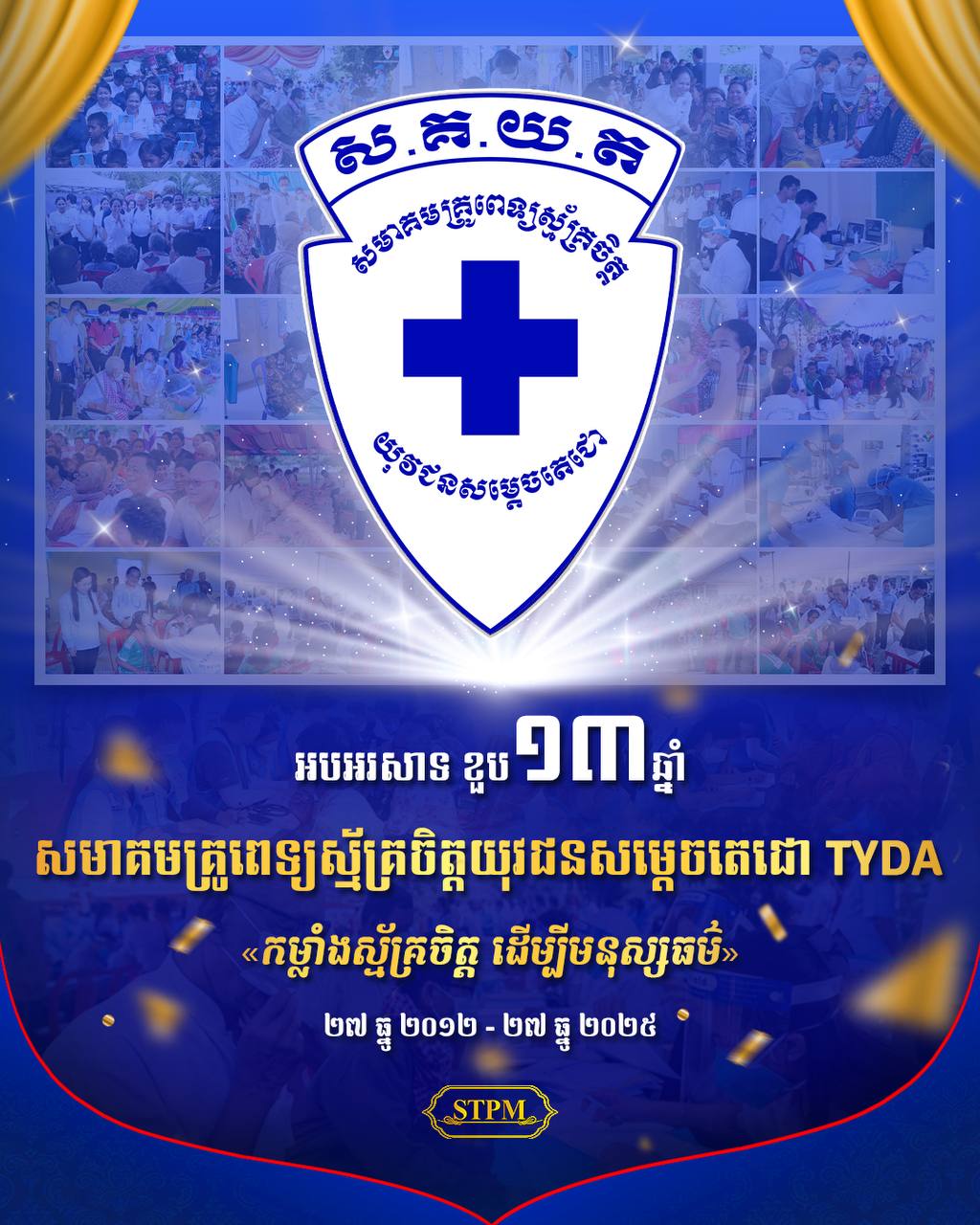 សម្តេចមហាបវរធិបតី ហ៊ុន ម៉ាណែត នាយករដ្ឋមន្ត្រីនៃព្រះរាជាណាចក្រកម្ពុជា អបអរសាទរ ខួប ១៣ឆ្នាំ សមាគមគ្រូពេទ្យស្ម័គ្រចិត្តយុវជនសម្ដេចតេជោ (TYDA)