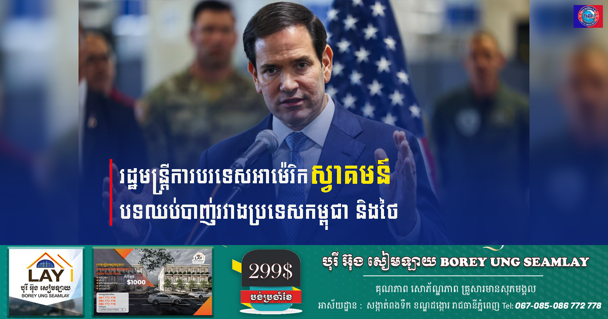 ឯកឧត្តម Marco Rubio រដ្ឋមន្ត្រីក្រសួងការបរទេសហរដ្ឋអាម៉េរិក បានចេញសេចក្តីថ្លែងការណ៍ស្វាគមន៍ចំពោះសេចក្តីប្រកាសរបស់ប្រទេសកម្ពុជា និងថៃ បន្ទាប់ពីការឈានដល់បទឈប់បាញ់ ដែលបញ្ឈប់អំពើអរិភាពតាមបណ្តោយព្រំដែនរបស់ប្រទេសទាំងពីរ បន្ទាប់ពីកិច្ចប្រជុំពិសេសលើកទី៣ នៃគណៈកម្មាធិការព្រំដែនទូទៅ (GBC)។ នេះបើយោងតាមក្រសួងការបរទេសអាម៉េរិកផ្សាយនៅថ្ងៃទី២៧ ខែធ្នូ ឆ្នាំ២០២៥ ម្សិលមិញនេះ។