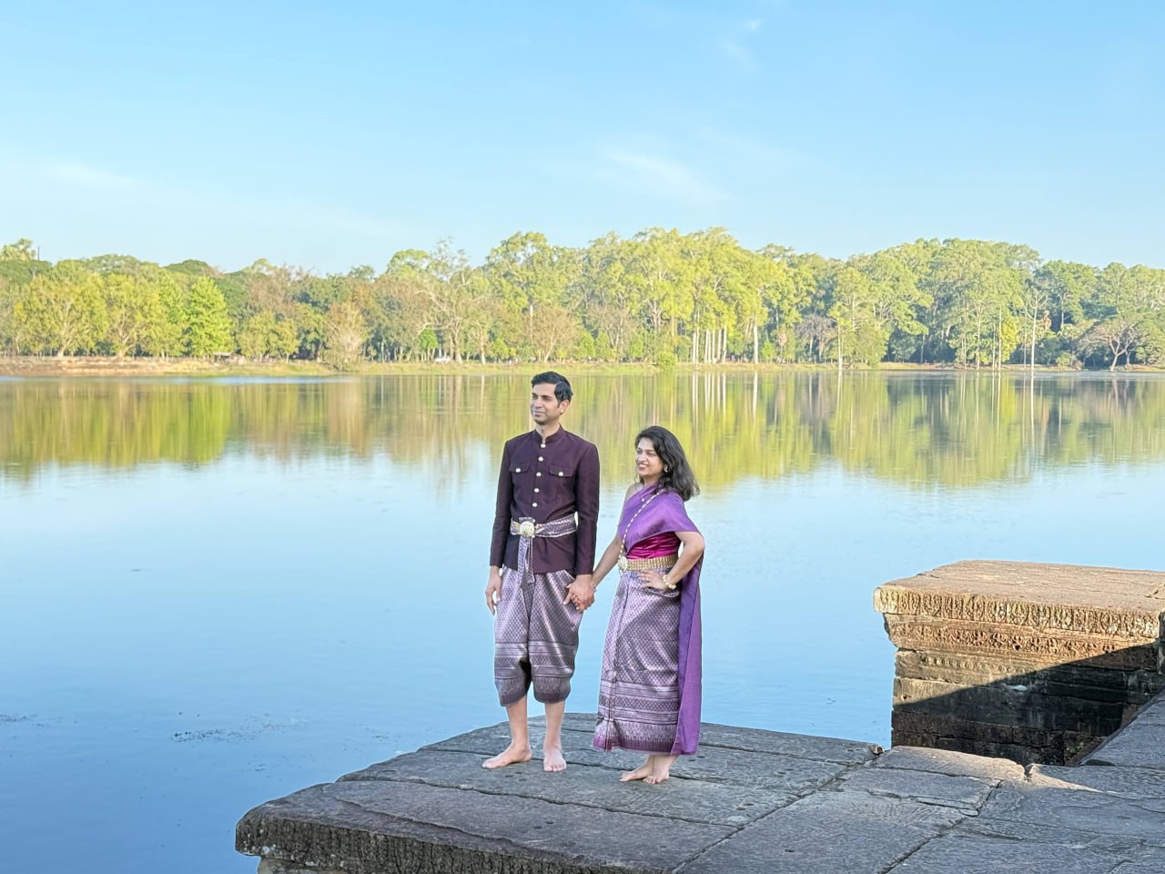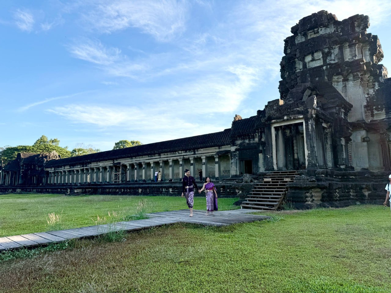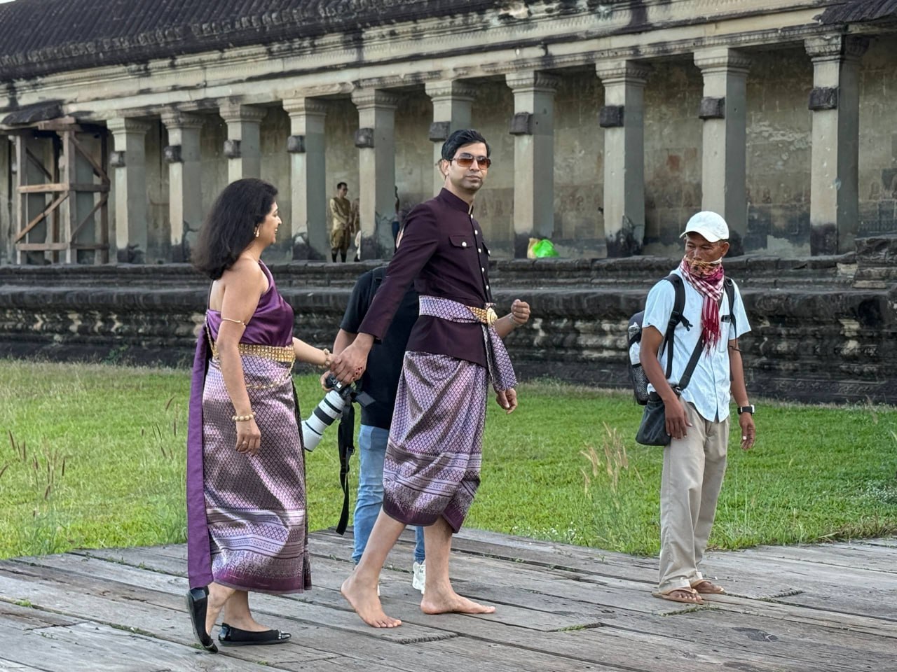 ភ្ញៀវបរទេសឥណ្ឌា ស្លៀកសម្លៀកបំពាក់ប្រពៃណីខ្មែរ នៅបរិវេណប្រាសាទអង្គរ បង្ហាញពីការគោរពស្រសាញ់វប្បធម៌ និងមរតកជាតិខ្មែរ