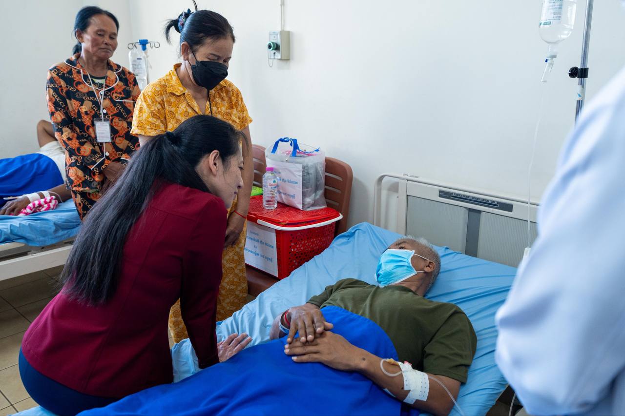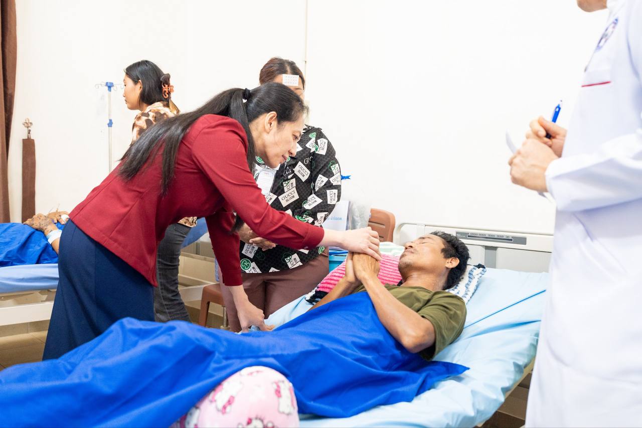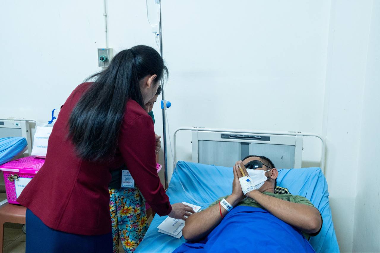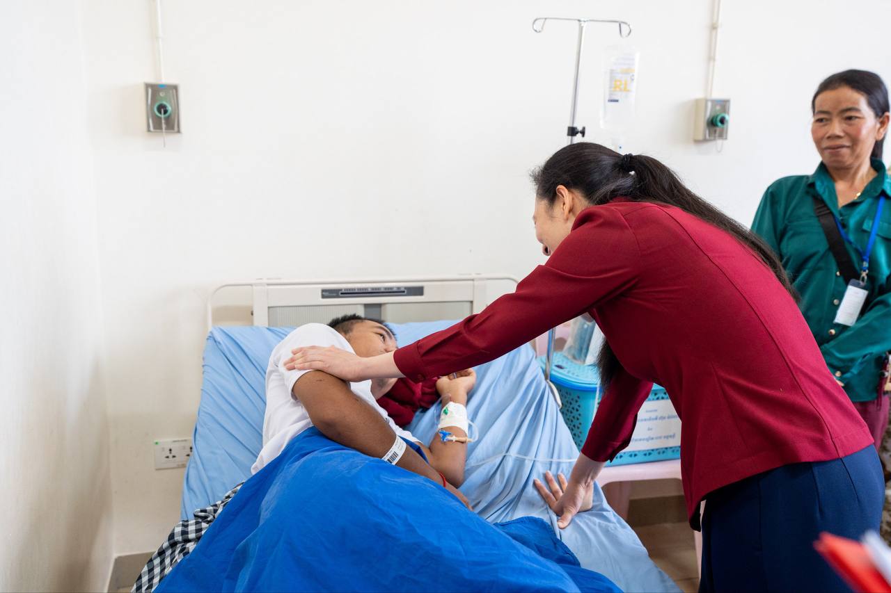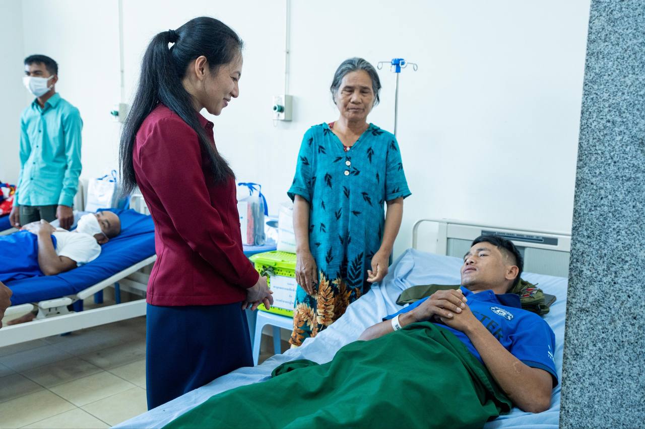 លោកជំទាវបណ្ឌិតថែមទាំងជូនពរដល់វីរកងទ័ព និងប្រជាជនរងគ្រោះ ដែលកំពុងសម្រាកព្យាបាល សូមឱ្យមានសុខភាពល្អមាំមួនឡើងវិញក្នុងពេលឆាប់ៗ ដោយភ្ជាប់ជាមួយពាក្យផ្តាំផ្ញេីទៅកាន់វេជ្ជបណ្ឌិតទាំងអស់សូមឱ្យព្យាបាលថែទាំដោយយកចិត្តទុកដាក់បំផុត ។