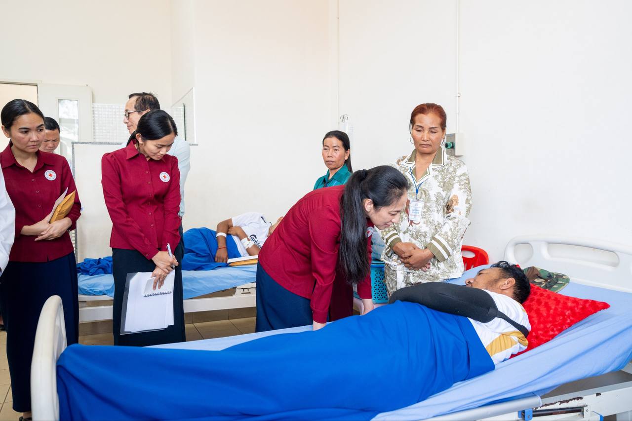 លោកជំទាវបណ្ឌិត ពេជ ចន្ទមុន្នី ហ៊ុនម៉ាណែត អនុប្រធានអចិន្ត្រៃយ៍កាកបាទក្រហមកម្ពុជា និងជាតំណាងដ៏ខ្ពង់ខ្ពស់របស់ សម្តេចកិត្តិព្រឹទ្ធបណ្ឌិត ប៊ុន រ៉ានី ហ៊ុនសែន ប្រធានកាកបាទក្រហមកម្ពុជា បានអញ្ជើញសួរសុខទុក្ខវីរកងទ័ព និងប្រជាជនរងគ្រោះដោយផ្ទាល់នៅមន្ទីរពេទ្យបង្អែកខេត្តសៀមរាប ។