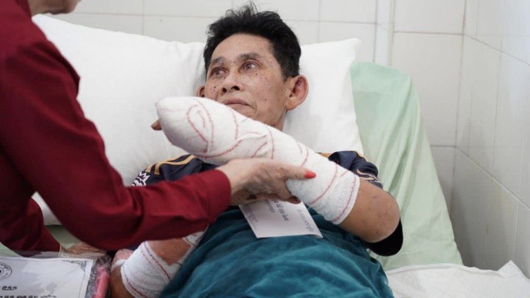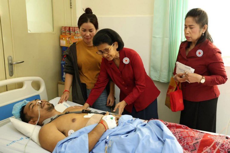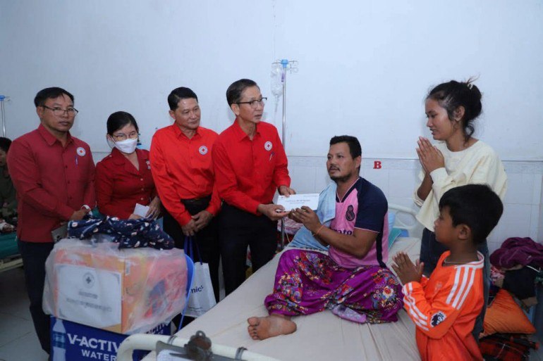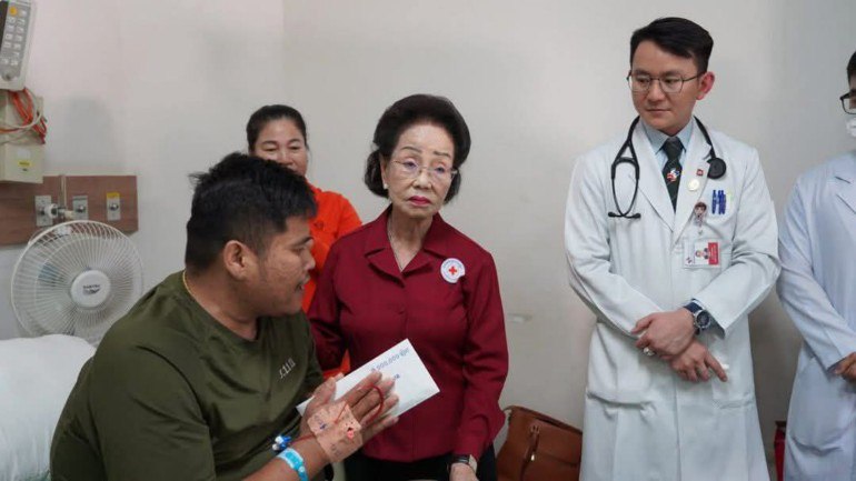 ក្រោមការយកចិត្ដទុកដាក់ដោយមិនរំលង ប្រកបដោយបេះដូងកក់ក្ដៅរបស់មាតាមនុស្សធម៌ សម្ដេចកិត្ដិព្រឹទ្ធបណ្ឌិត ប៊ុន រ៉ានី ហ៊ុនសែន ប្រធានកាកបាទក្រហមកម្ពុជា នៅថ្ងៃទី២៨ ខែធ្នូ ឆ្នាំ២០២៥នេះ បានបន្ដចាត់មន្ដ្រីក្រុមការងារជាបីក្រុម ចុះសួរសុខទុក្ខ និងនាំយកនូវអំណោយជូនដល់វីរយុទ្ធជនយើងដែលរងរបួសកំពុងសម្រាកព្យាបាលនៅមន្ទីរពេទ្យទាំង៥ នៅរាជធានីភ្នំពេញ រួមមានមន្ទីរពេទ្យមិត្ដភាពខ្មែរ-សូវៀត មន្ទីរពេទ្យមិត្ដភាពកម្ពុជា-ចិន ព្រះកុសុមៈ ដឹកនាំដោយលោកជំទាវបណ្ឌិត អ៊ុក ម៉ាលី អគ្គហេរញ្ញិកកាកបាទក្រហមកម្ពុជា, មន្ទីរពេទ្យកាល់ម៉ែត និងមន្ទីរពេទ្យព្រះអង្គឌួង ដឹកនាំដោយលោកជំទាវ ពុំ ចន្ទីនី អគ្គលេខាធិការ និងមន្ទីរពេទ្យព្រះកេតុមាលា ដឹកនាំដោយឯកឧត្ដម សំ វណ្ណារ៉ា នាយករងខុទ្ទកាល័យ សម្តេចកិត្តិព្រឹទ្ធបណ្ឌិត។
