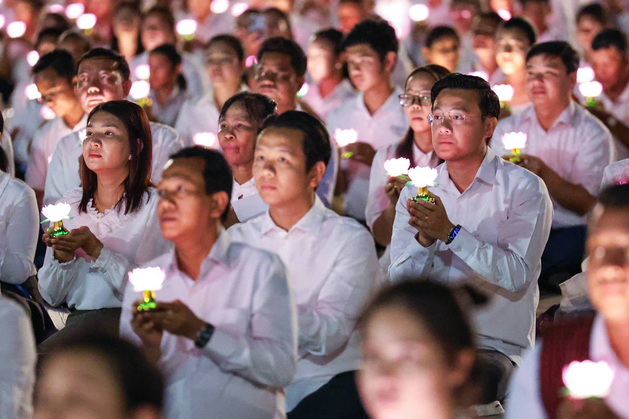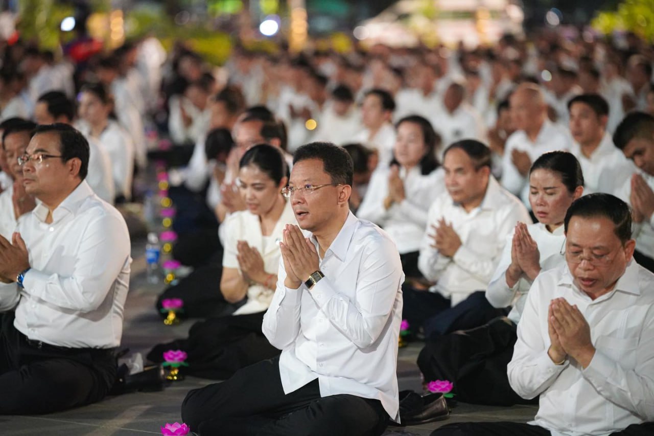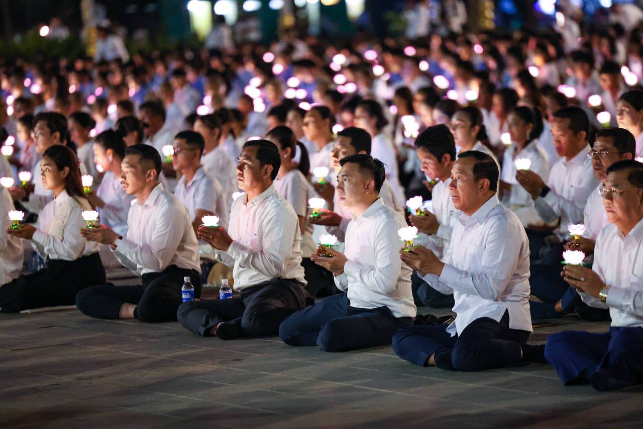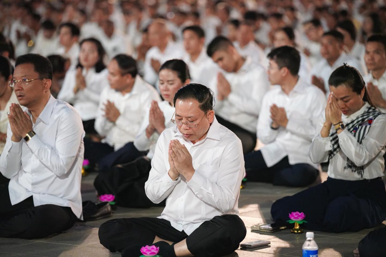 ភ្នំពេញ ថ្ងៃទី២៩ ខែធ្នូ ឆ្នាំ២០២៥ ៖ «ពិធីបួងសួងសុំសុខសន្តិភាពសម្រាប់ព្រះរាជាណាចក្រកម្ពុជា» បានប្រារព្ធធ្វើនៅវិមានអនុស្សាវរីយ៍ឈ្នះឈ្នះ ស្ថិតក្នុងសង្កាត់ព្រែកតាសេក ខណ្ឌជ្រោយចង្វារ រាជធានីភ្នំពេញ ក្រោមការនិមន្ត និងអញ្ជើញចូលរួមពីសំណាក់ សម្ដេចព្រះឧត្ដមវង្សាបណ្ឌិត គូ សុភាព និងឯកឧត្តម លោកជំទាវជាថ្នាក់ដឹកនាំក្រសួង/ស្ថាប័ន ព្រមទាំងពុទ្ធបរិស័ទជាច្រើនរូប នាល្ងាចថ្ងៃទី២៩ ខែធ្នូ ឆ្នាំ២០២៥ ក្នុងឱកាសខួបលើកទី២៧ ទិវាសន្តិភាពនៅកម្ពុជា (២៩ ធ្នូ ១៩៩៨ – ២៩ ធ្នូ ២០២៥)។