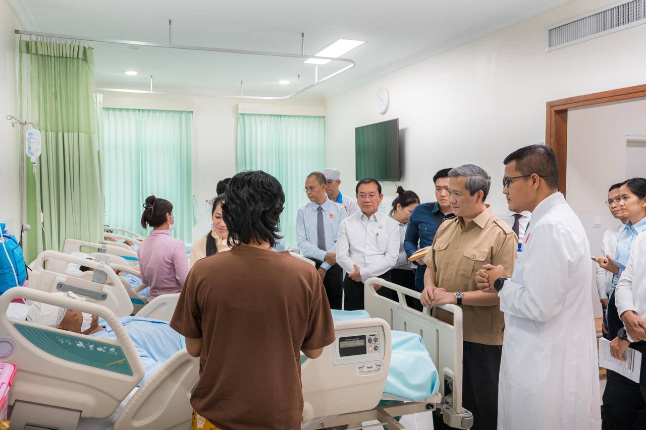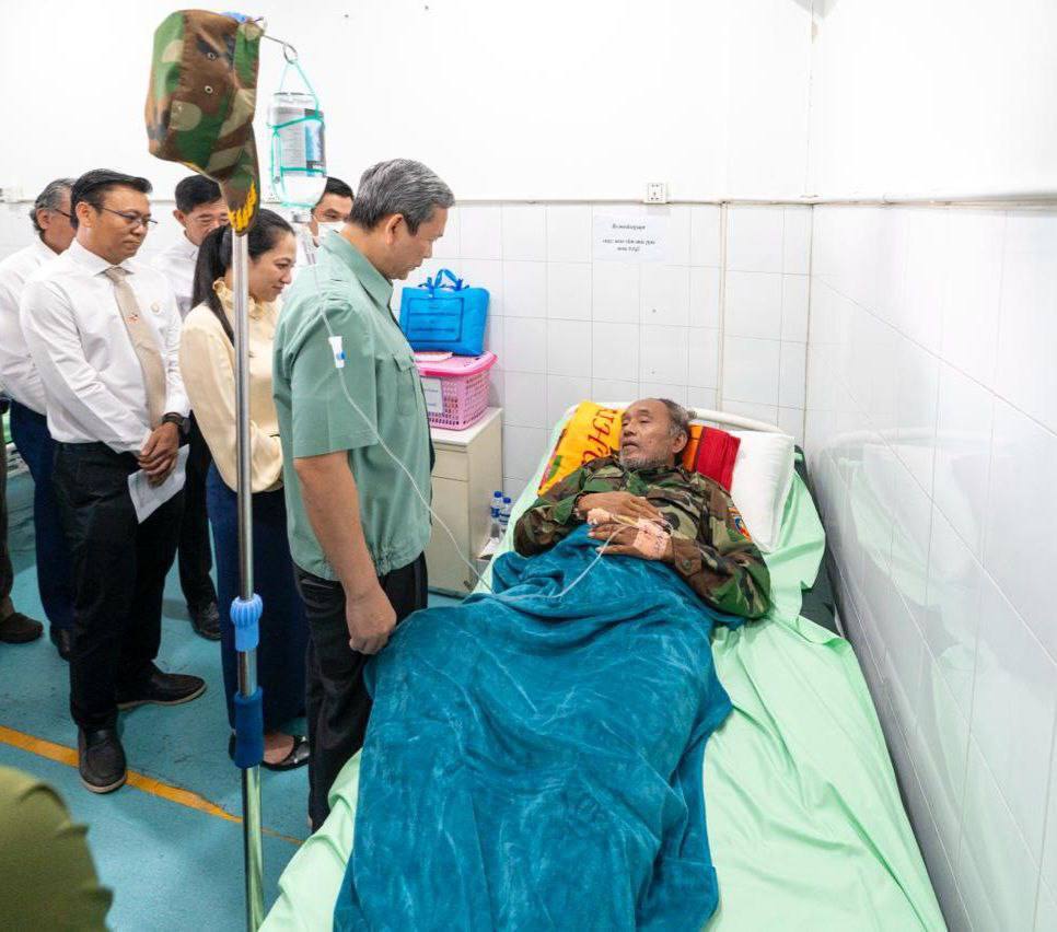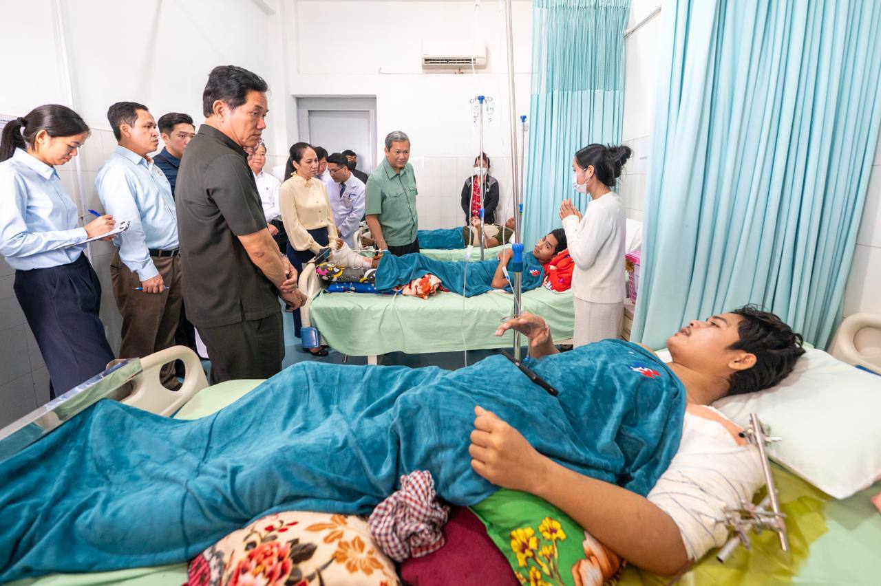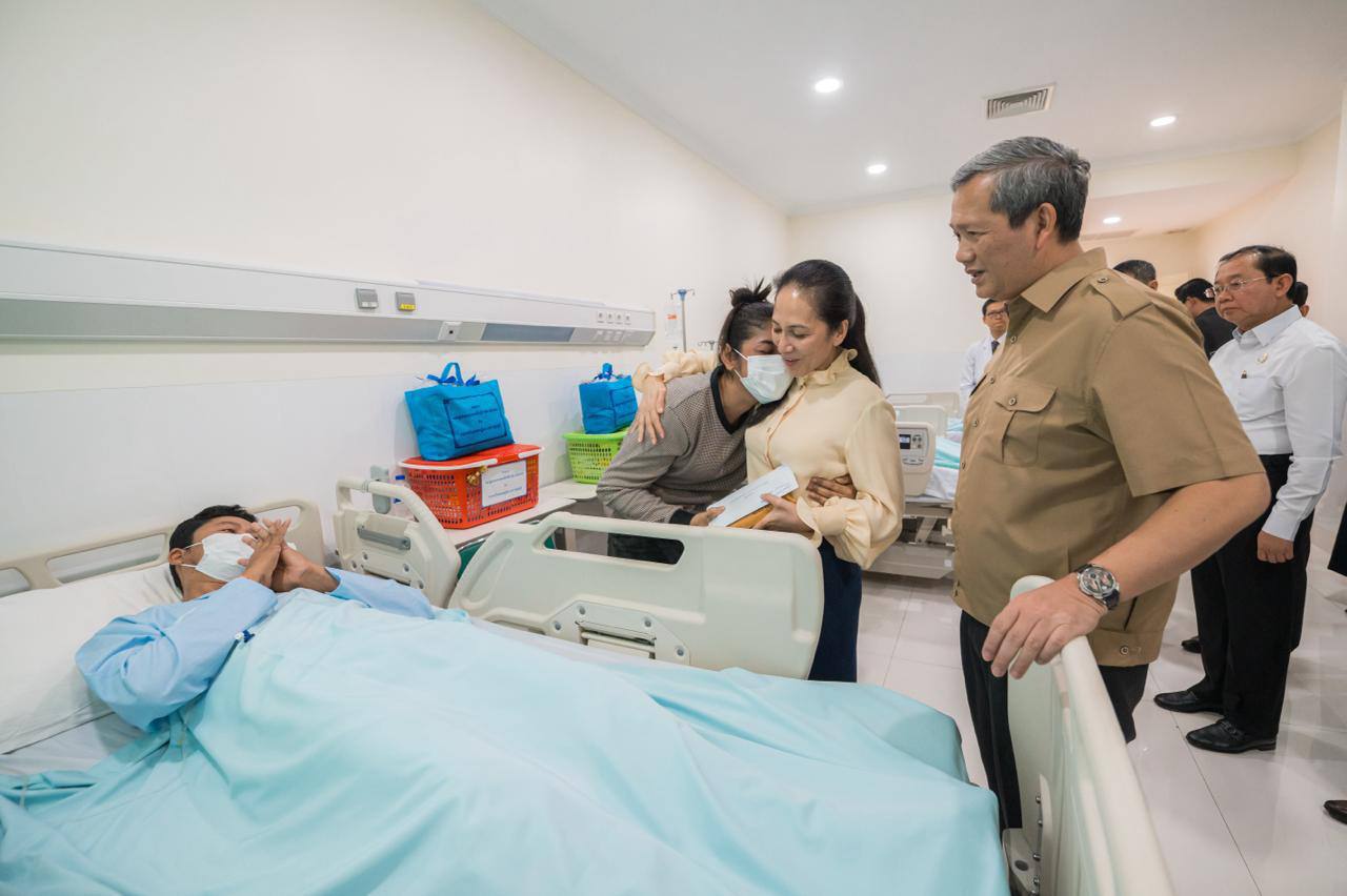 សម្តេចធិបតី និងលោកជំទាវបណ្ឌិត អញ្ជើញជួបសួរសុខទុក្ខវីរកងទ័ព និងវីរនគរបាលដែលរងរបួសក្នុងសមរភូមិ និងបានបញ្ជូនមកសម្រាកព្យាបាលបន្តនៅតាមមន្ទីរពេទ្យក្នុងរាជធានីភ្នំពេញ