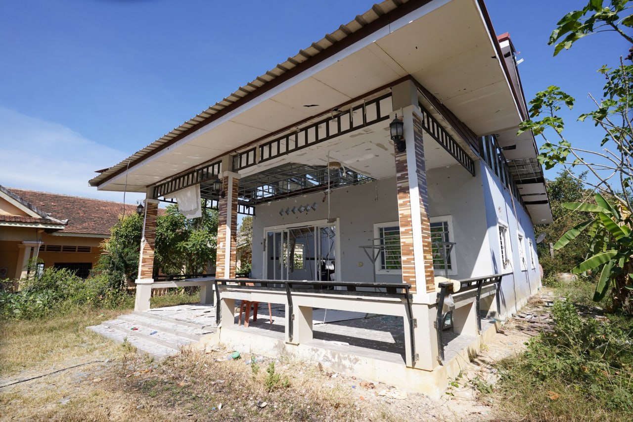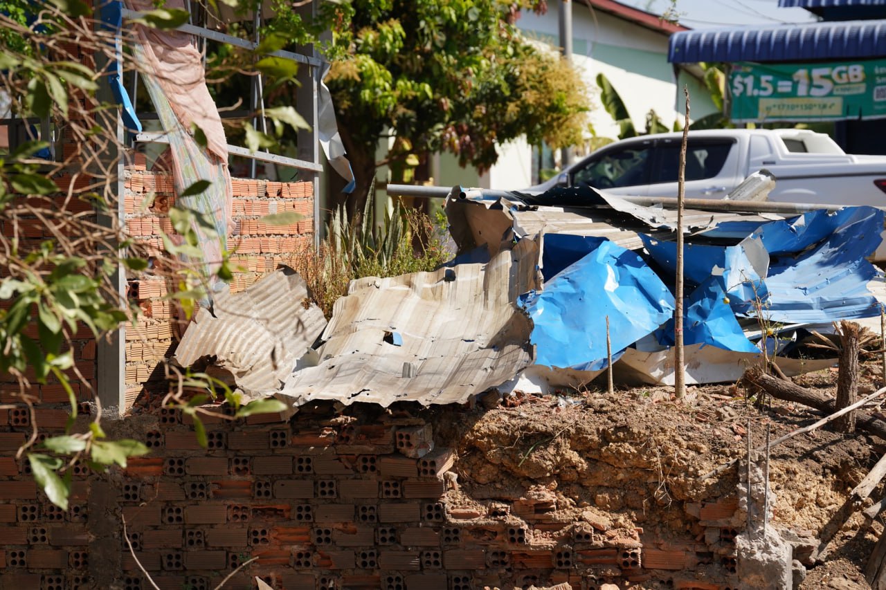 ទិដ្ឋភាពផ្ទះសម្បែងរបស់បងប្អូនប្រជាពលរដ្ឋនៅភូមិព្រៃចាន់ រងការបំផ្លិចបំផ្លាញដោយសារគ្រាប់បែករបស់យោធាថៃ !
