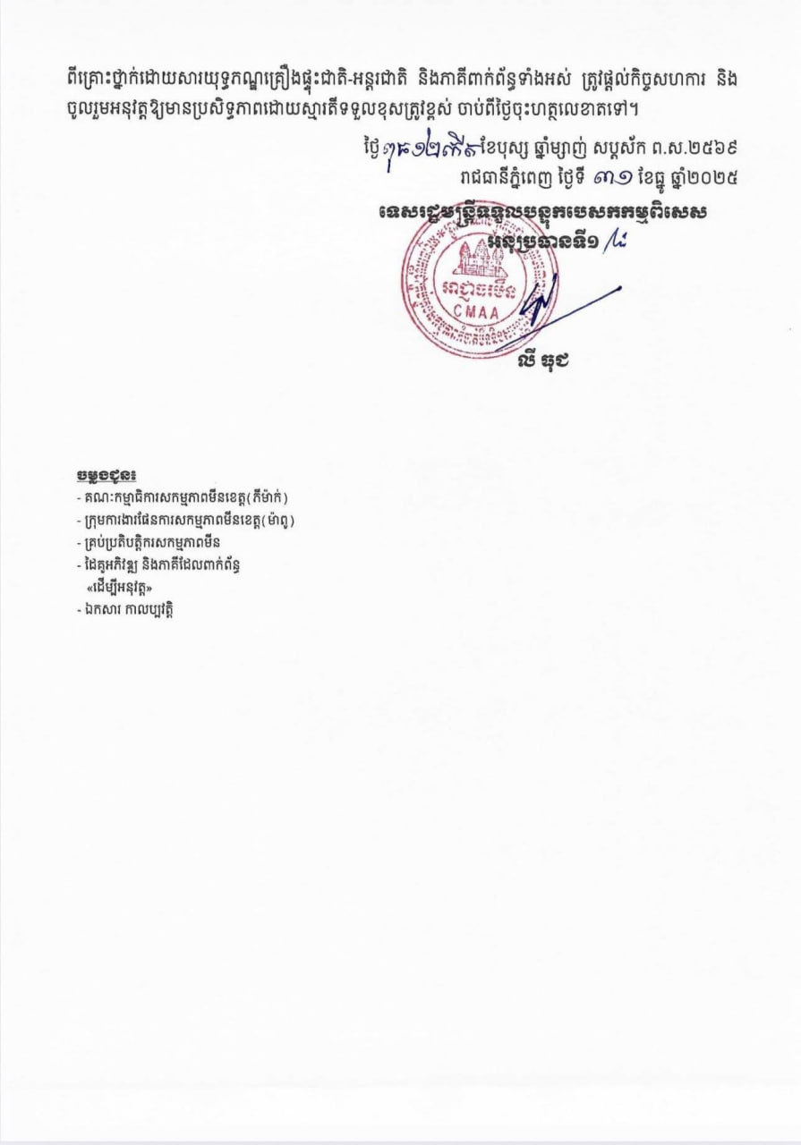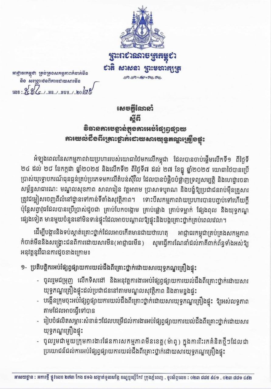 សេចក្តីណែនាំរបស់អាជ្ញាធរមីន ស្តីពីវិធានការបន្ទាន់ក្នុងការអប់រំផ្សព្វផ្សាយការយល់ដឹងពីគ្រោះថ្នាក់ដោយសារយុទ្ធភណ្ឌគ្រឿងផ្ទុះ ៕