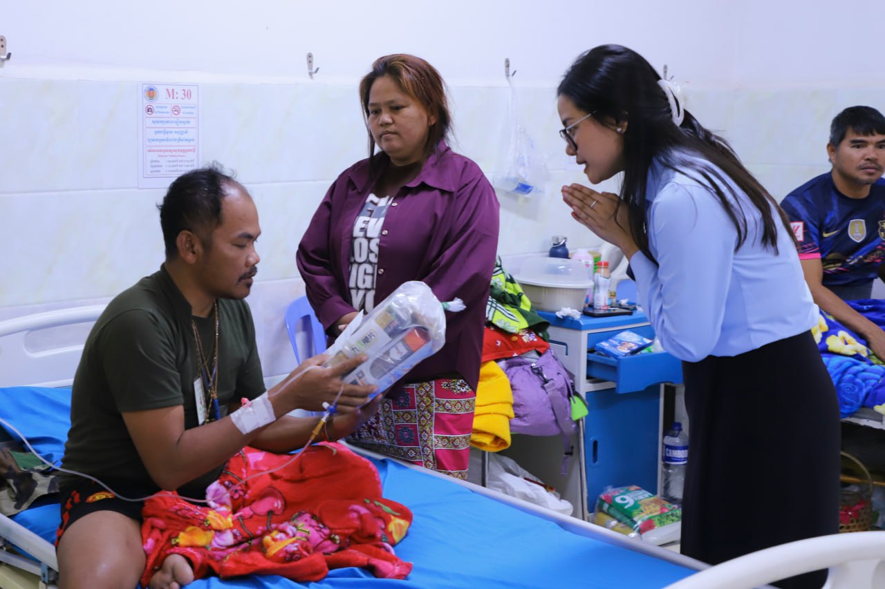 (ភ្នំពេញ)៖ លោកស្រីបណ្ឌិតសភាចារ្យ ភឿង សកុណា រដ្ឋមន្ត្រីក្រសួងវប្បធម៌និងវិចិត្រសិល្បៈ និងជាប្រធានកិត្តិយសសាខាសមាគមនារីកម្ពុជាដើម្បីសន្តិភាពនិងអភិវឌ្ឍន៍ក្រសួង អមដោយថ្នាក់ដឹកនាំ និងសមាជិក សមាជិកា សមាគមនារីកម្ពុជាដើម្បីសន្តិភាពនិងអភិវឌ្ឍន៍ក្រសួង នៅថ្ងៃទី២ ខែមករា ឆ្នាំ២០២៦ បានអញ្ជើញចុះសំណេះសំណាលសួរសុខទុក្ខវីរយុទ្ធជនការពារបូរណភាពទឹកដីដែលកំពុងសម្រាកព្យាបាលរបួសនៅមន្ទីរពេទ្យព្រះកេតុមាលា។