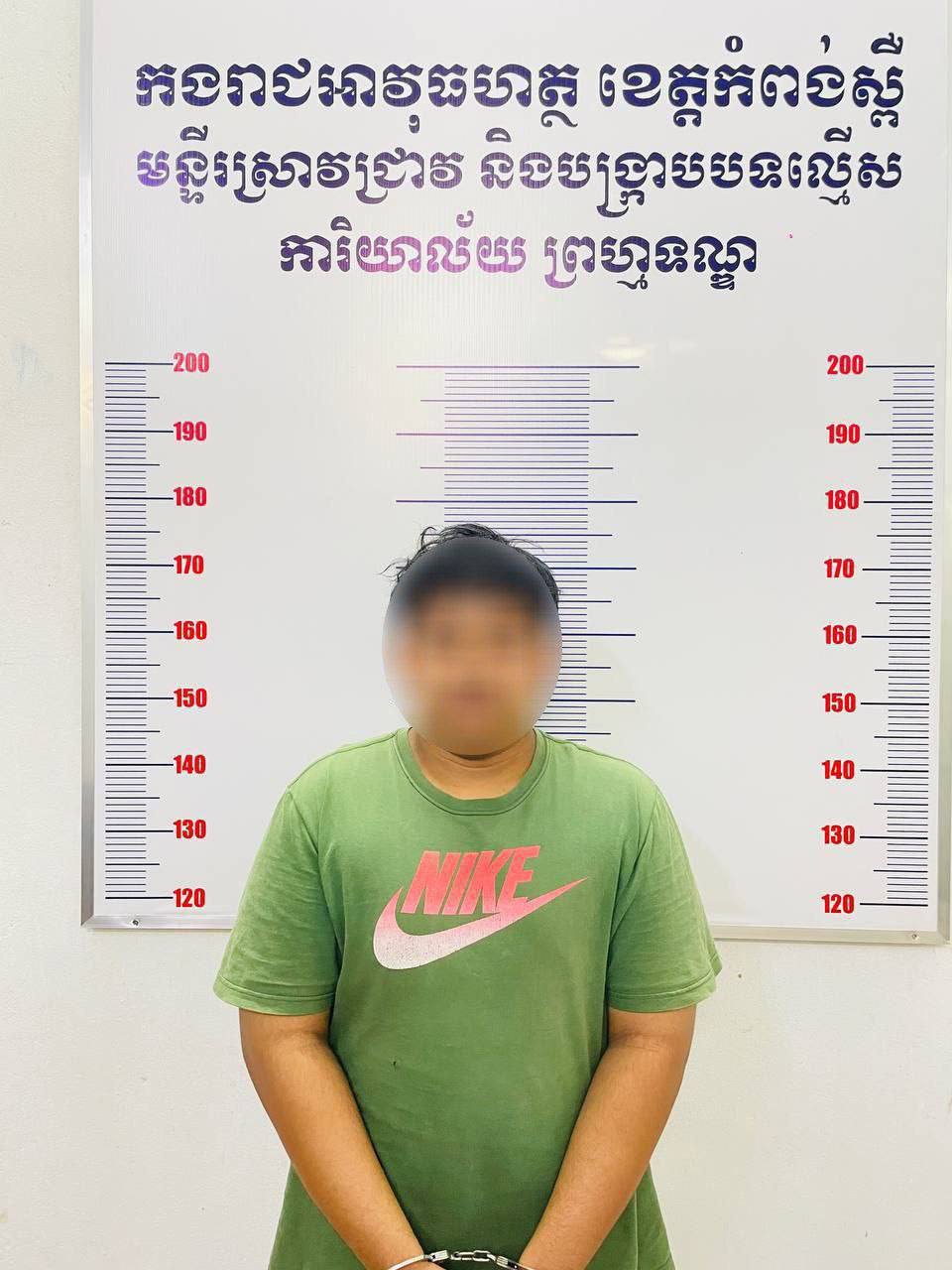 កំពង់ស្ពឺ៖ ដោយអនុវត្តតាមបទបញ្ជាយ៉ាងម៉ឺងម៉ាត់របស់ លោកឧត្តមសេនីយ៍ត្រី ម៉េង ស្រ៊ុន មេបញ្ជាការ កងរាជអាវុធហត្ថខេត្តកំពង់‌‎ស្ពឺ កាលពី ល្ងាច ថ្ងៃទី០៣ ខែមករា ឆ្នាំ២០២៦កន្លងមកនេះ កម្លាំងមូលដ្ឋានកងរាជអាវុធហត្ថក្រុងច្បារមន បានសហការ កម្លាំងមន្ទីរស្រាវជ្រាវ និងបង្រ្កាបបទល្មើស បានធ្វើការឃាត់ខ្លួន ជនសង្ស័យចំនួន ០១នាក់ ពាក់ព័ន្ធករណីហិង្សា ស្ថិតនៅភូមិពាណិជ្ជកម្ម សង្កាត់រកាធំ ក្រុងច្បារមន ខេត្តកំពង់ស្ពឺ។